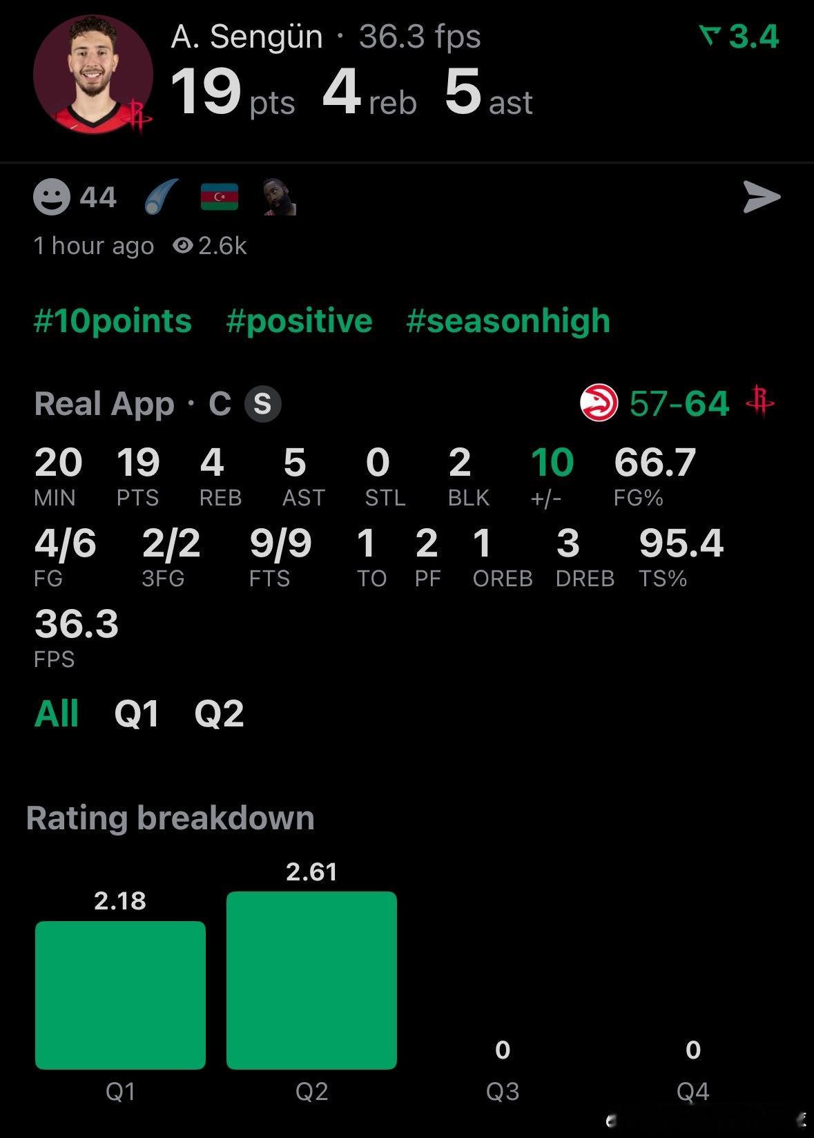 【统治力】申京上半场登场20分钟6中4其中三分球2中2,罚球9中9拿下19分5助攻4篮板2盖帽🔥