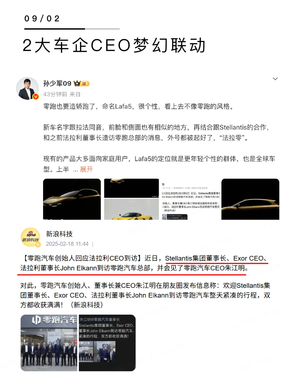 💥就在刚刚,孙少军晒出了一张零跑朱总与法拉利总裁的合影,而月销海报上最新的神秘轿跑车型也代号“Lafa”!没错,和法拉利的经典保值神车拉法同名,这是要合作了?!