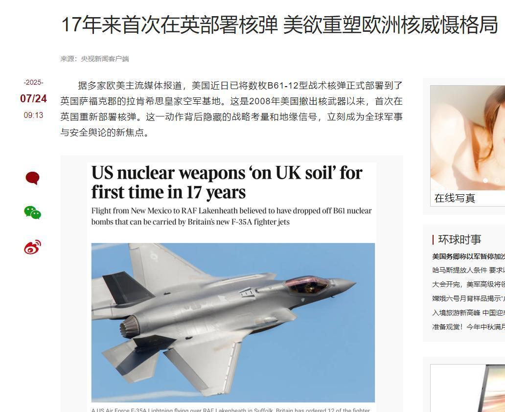 咱刚呼吁美撤走亚太核武,美国转头就来了个更狠的。直接宣布核预算暴涨377亿,B61-13核弹提前半年投产,还要把B61-12战术核弹部署到英国! 先说说,这377亿核预算是个啥概念。美国本来就是全球核武库最庞大的国家,核弹头数量超过5500枚,占全球总量的一半以上。现在又追加这么多钱,相当于给已经装满子弹的枪再压上一梭子。 更恶心的是,这笔钱主要花在“金穹”天基反导系统,和B61系列核弹升级上。所谓的“金穹”系统,号称要发射数千颗卫星组成拦截网,美其名曰“防御”,实际上就是想削弱中俄的核威慑能力。这纯属就是“我可以打你,你不能还手”的强盗逻辑。 再看看B61-13核弹。这玩意儿可不是普通的核武器,它是B61系列的最新型号,具备钻地能力,专门用来打击地下军事设施。美国提前半年投产这种核弹,明显是针对中国和俄罗斯的战略目标。 更过分的是,美国还把B61-12战术核弹部署到英国。要知道,英国离欧洲大陆只有几十公里,这就相当于在俄罗斯家门口,架起了一门随时能发射的核大炮。这种挑衅行为,连欧洲国家都看不下去了。德国媒体就曾批评,美国这是把欧洲当成了“核人质”,一旦爆发冲突,欧洲将首当其冲成为核战场。 话说回来,美国这么做的底气从哪儿来?说白了,就是仗着自己的核武库规模大、技术先进。但他们忘了,中国的核力量也在快速发展。根据美国科学家联合会的数据,中国核弹头数量已经突破600枚,虽然还不到美国的零头,但中国拥有东风-41洲际导弹,和096型核潜艇这样的“杀手锏”武器。 东风-41射程超过1.2万公里,可携带多枚核弹头,半小时内就能覆盖全球主要目标;096型核潜艇搭载的巨浪-3潜射导弹,让中国具备了可靠的二次核打击能力。更重要的是,中国的核政策一直是“不首先使用核武器”,而美国却在不断降低核武器的使用门槛,这种对比让美国的“核威慑”显得更加苍白无力。 面对美国的步步紧逼,中国当然不会坐视不管。在联合国大会上,中国常驻联合国大使耿爽直接怼了回去:美俄得先大幅削减核武库,中国才会考虑加入核裁军谈判。这个“先裁”的门槛,直接戳中了美国的七寸。要知道,美俄核武库加起来占全球九成以上,要是他们不先裁,中国贸然裁军就是“自废武功”。 更绝的是,中国还要求美国放弃“金穹”系统、撤走“提丰”中导、终止“核共享”,这些都是美国核战略的核心支柱。如果美国真的按照中国的要求做了,那他们的核威慑能力将大打折扣。 除了外交上的反制,中国在军事上也在加速布局。最近几年,中国的055大驱、歼-20隐身战机、076型两栖攻击舰等先进武器装备接连下水或服役,这些都是应对美国军事威胁的“硬通货”。 更值得一提的是,中国在高超音速武器领域已经走在了世界前列。东风-17导弹的高超音速滑翔弹头,能突破现有的任何反导系统,让美国的“金穹”系统变成一堆废铁。这种“你打你的,我打我的”非对称作战思维,正是中国应对美国核威慑的关键策略。 事实上,美国的这种核冒险行为,最终只会搬起石头砸自己的脚。一方面,美国的核扩军计划会引发新一轮军备竞赛,导致全球安全形势进一步恶化。俄罗斯已经宣布,将针对美国的核部署采取“对等措施”,包括在白俄罗斯部署战术核武器。 另一方面,美国的盟友也开始对其核政策产生质疑。欧洲国家担心,美国的核冒险会把他们拖入一场不必要的战争。德国总理默茨就曾私下表示,美国在欧洲部署核武器是“冷战思维的延续”,不符合欧洲的利益。 历史总是惊人的相似。上世纪80年代,美国通过“星球大战”计划拖垮了苏联的经济。如今,美国又想用同样的伎俩对付中国。但他们忘了,中国不是苏联。中国有14亿人口、完整的工业体系和庞大的国内市场,完全有能力承受住美国的军事压力。 更重要的是,中国走的是和平发展道路,不会被美国的“军备竞赛”牵着鼻子走。正如外交部发言人毛宁所说:“中国的核力量发展始终以‘最低限度核威慑’为目标,我们不会参与任何形式的军备竞赛。” 美国的核讹诈注定是徒劳的。在这个全球化的时代,任何国家都无法通过军事手段实现绝对安全。只有通过对话与合作,建立互信机制,才能真正维护全球核安全。中国已经多次表示,愿意在“安全不可分割”的原则基础上,与美国进行核裁军谈判。但前提是,美国必须放弃“霸权思维”,拿出诚意来。否则,等待美国的,只能是一个更加动荡不安的世界。 最后,我想说:美国啊,别再做“核霸王”的美梦了。时代变了,中国不是伊拉克,也不是阿富汗。如果你非要把中国逼到墙角,那就别怪我们“以其人之道还治其人之身”。毕竟,真理只在大炮的射程之内,而中国的大炮,已经足够长、足够硬了。 参考资料:央视新闻