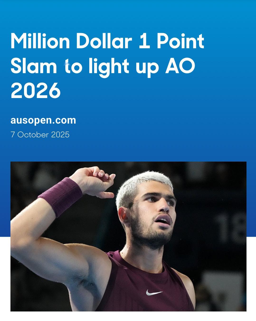 2026澳网将举办一球制胜大满贯(Million Dollar 1 Point Slam)