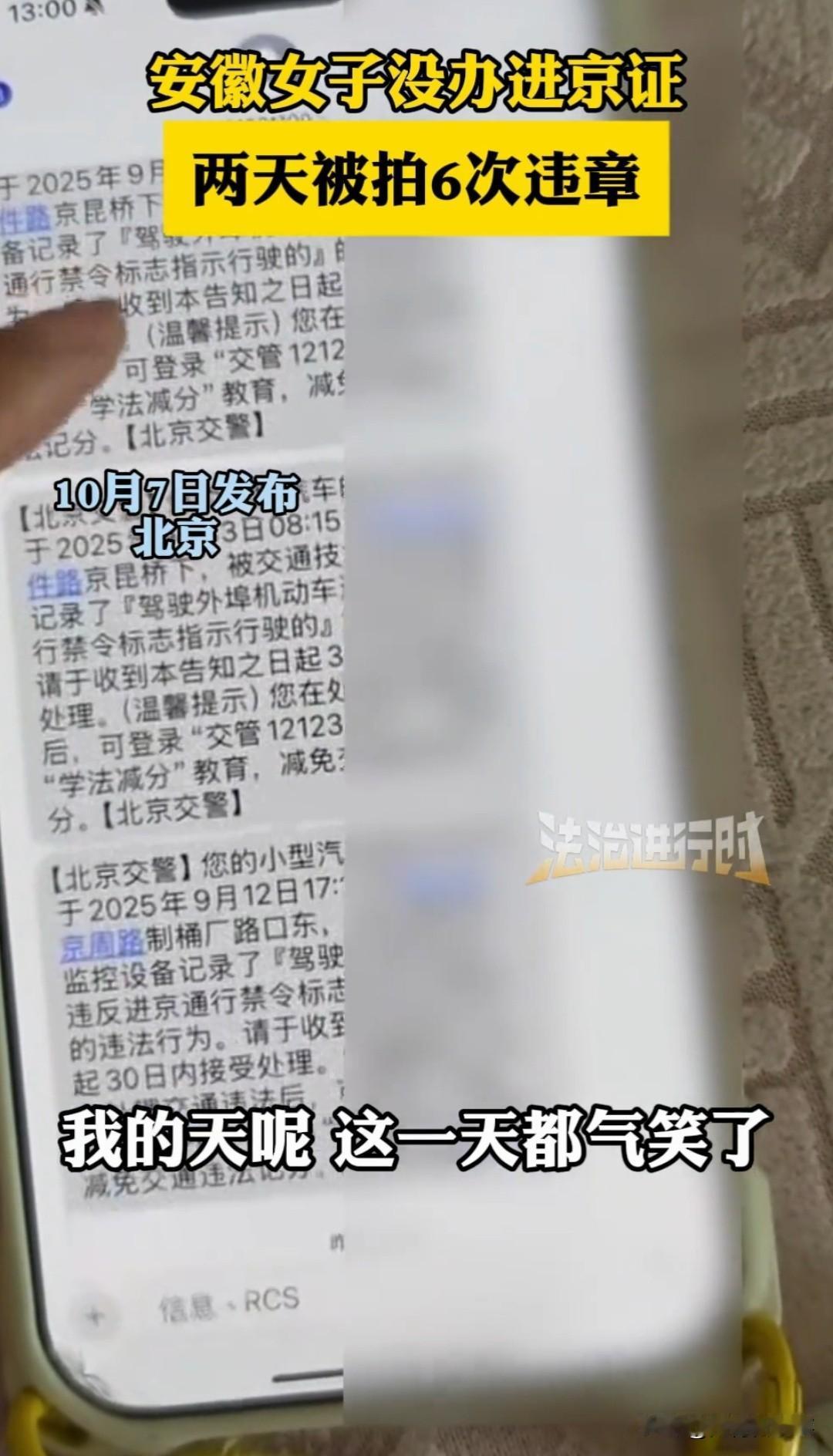 “两天6次!安徽大姐进京没办证,直接被摄像头‘连砍’18分! 10月7日北京这波操作,让全国外地车主后背发凉——没进京证就敢进六环?分分钟教你做人! 大姐估计肠子都悔青了:不知道北京现在遍地‘电子眼刺客’,禁行路段300米一个探头!咱普通车主谁没个急事忘办证的时候?可这‘一天最多罚3次’的规则,活生生把疏忽变成‘大出血’,600块罚款够半箱油了!更扎心的是,扣分比违章还密集,12分驾照两天就清零,打工人谁扛得住? 你觉得这处罚是‘严格执法’还是‘不近人情’?外地车进京该不该给个‘容错缓冲’?评论区吵起来——被摄像头连拍过的车主,举手!”