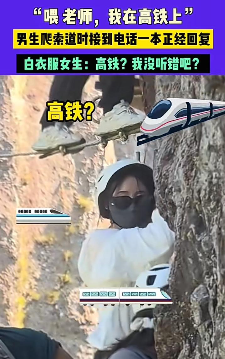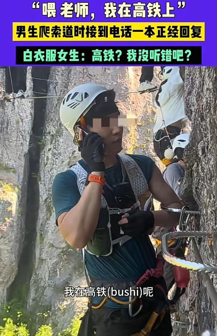 男子正在攀爬高空铁索道忽然老师来电话让他把论文发过去,还没有写好论文的他说自己正在高铁上等会发过去可以吗? 真的是男人的嘴太不靠谱了,旁边的一名女生听到他撒谎连眼睛都不眨一下,非常惊讶的顿促了数秒,心中非常怀疑难道自己也在高铁上。 该男子英俊帅气身姿挺拔没想到那个嘴如此不靠谱,以前都是说漂亮的女人万万不可信,没想到英俊的男人也要远离,这不是危言耸听而是真知灼见,有毒的草开迷人的花,爱你的人说难听的话。 和别人来往一定要有一定的分析能力,尤其是俊男美女切不可相信她们的一面之词,有时候可能是维护自己的得失,可撒谎是最没有必要的事情,诚信才是未来开疆扩土的敲门砖,一旦破裂很难修复,一定要保持实话实说的本质,虽然有得失成败,但人生无后顾之忧,没有什么比得到真消息而做出正确的判断更有意义的事情了,或许男子撒谎是他另一种纬度的判断,遇到嘴不靠谱的人,如果是美女撩一下再跑,如果是男人请脚底抹油——开溜。