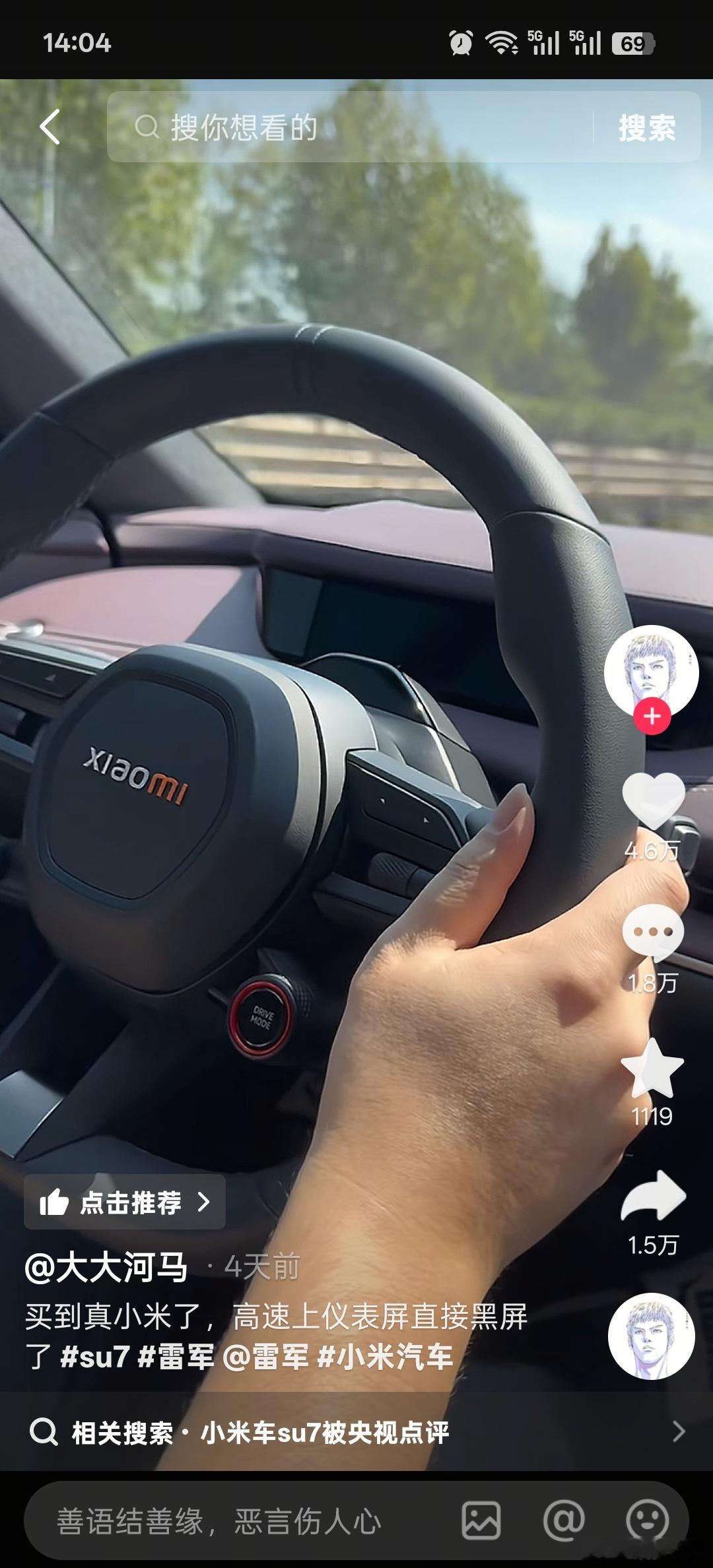 DY的算法有毒,自从前两天刷到一个小米SU7行驶中仪表盘熄屏的视频后,已经刷到几