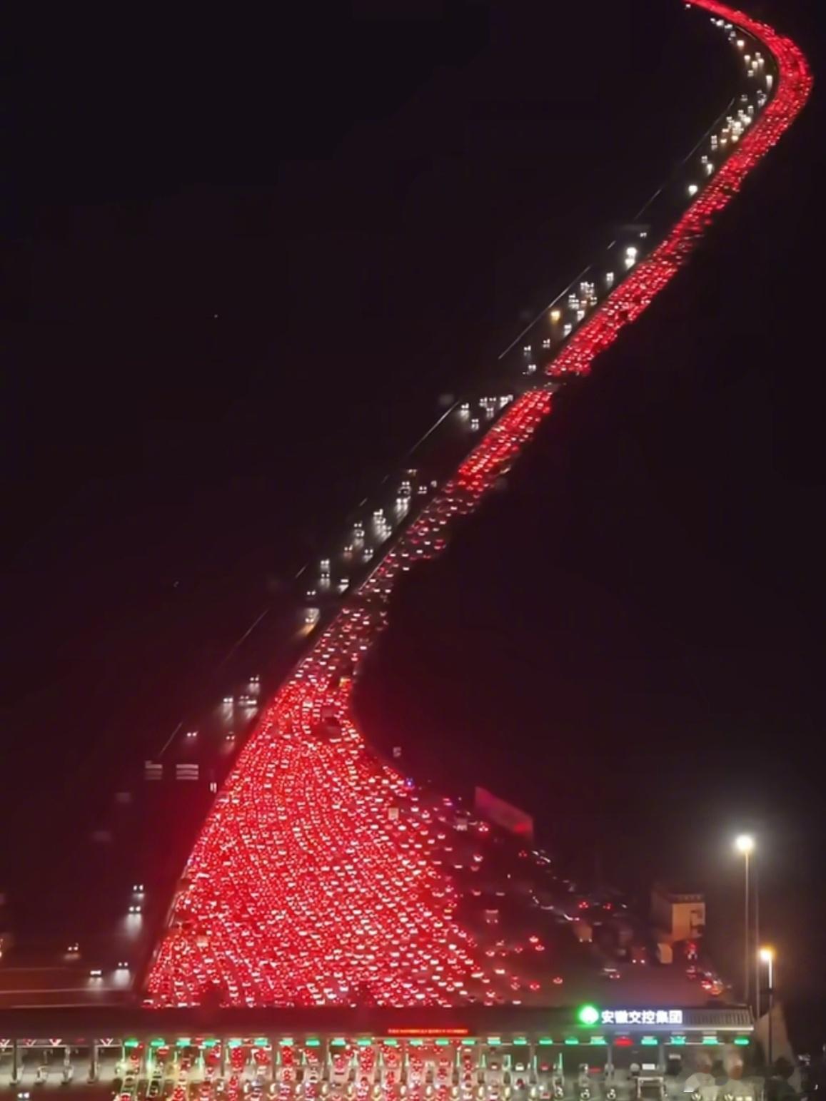 [跪了]刷到安徽吴庄收费站堵车,茫茫一片车海……太夸张了