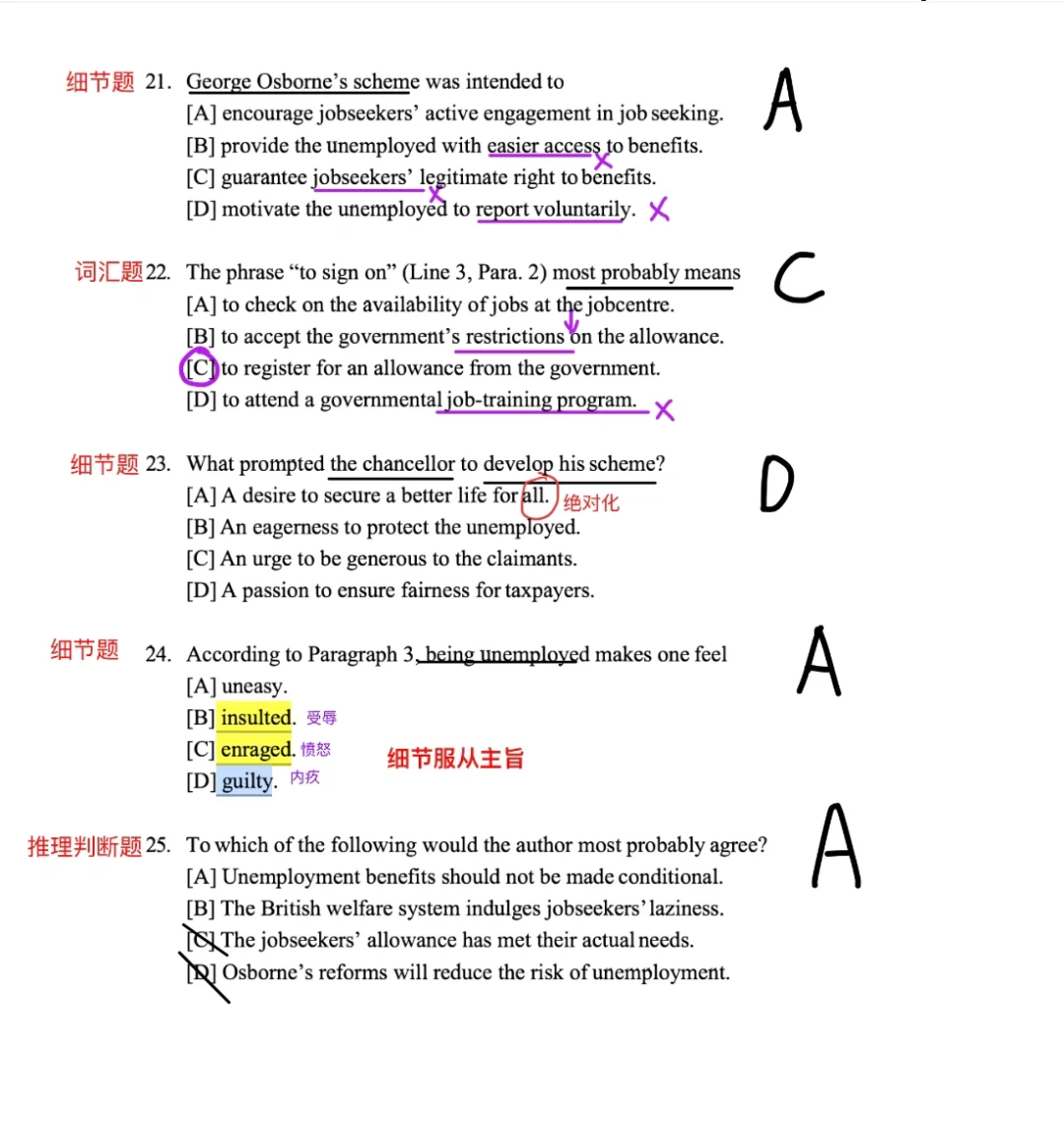 第4⃣️段:正面批驳新政:无视失业者真实心理,无视多年来日益严格的福利改革,彻底偏离福利制度的原则与初衷。