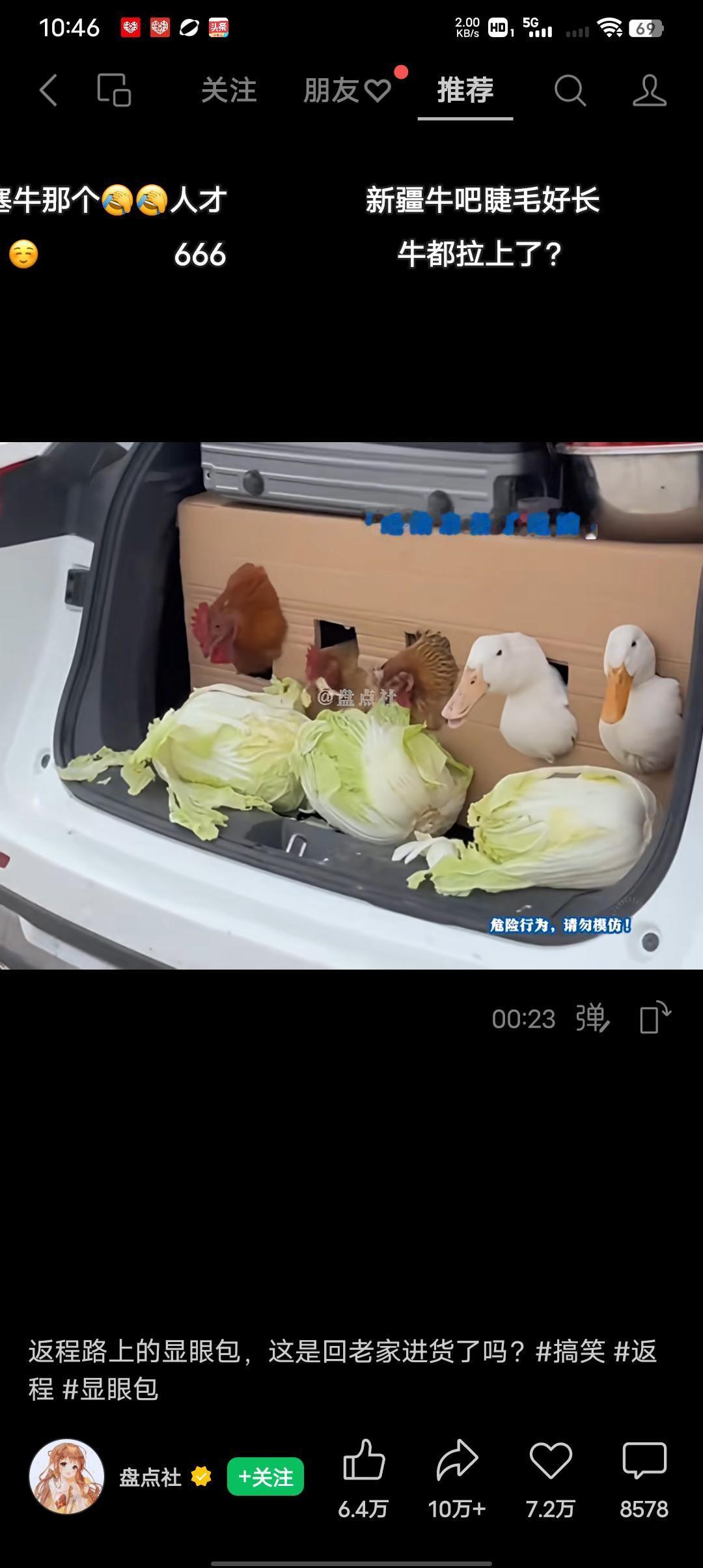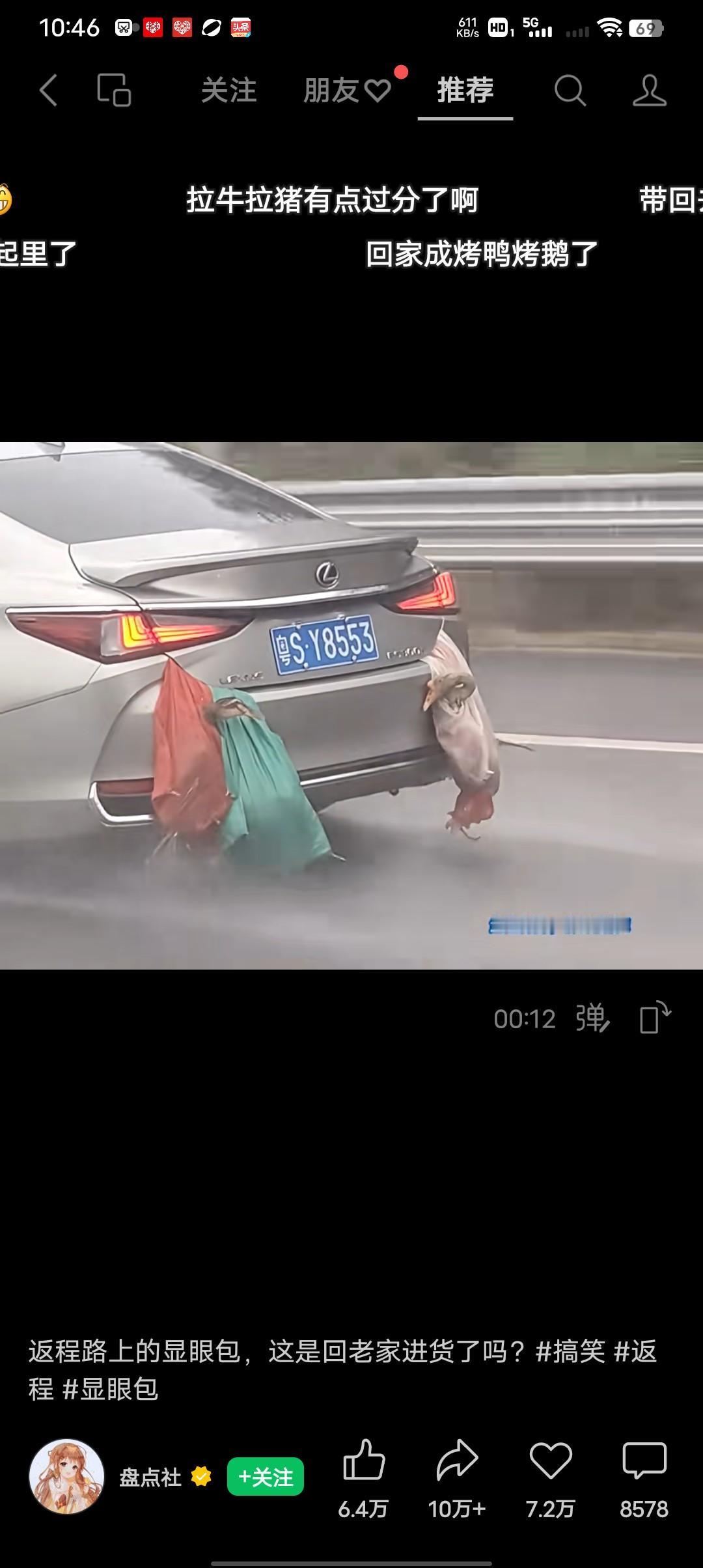 看看回程路上各种奇观,这其中有你吗?你是不是也是带走了父母满满的爱呢?国庆假期结尾了,你也在回程的路上了吗? 有好些人回程车子上比来的时候都满,其实都是父母满满的爱,仿佛他们想要把他们认为最好的东西都塞满你的车子,都想让你带走。 也许这些东西在你眼里不是好的,甚至还会有人觉得老人给的东西埋汰,外面花钱就能买到,何必要那么麻烦从老家带进城里,更有甚者还会嫌弃,还有不懂事的把老人自己都舍不得吃的东西半路上更扔了。 我想知道,你回老家的时候有用心给父母准备礼物吗?是不是从超市随便买点东西给老人,就觉是给父母尽孝了?其实老人盼的不是你带来的礼物,想见的只是你这个人,一家人能坐在一起吃一顿也许并不丰盛的饭,老人的世界也会暂时忘了空虚! 你带走的是满车的东西,也是父母满满的爱与牵挂,也许在他们心里只要你过的好好的,比啥都强!有时间的话,尽量多回家看看,陪老妈说说话,陪老父亲喝一杯,这些都是老家那些守村老人的快乐!他们的日子也许会猝不及防,也许今次能陪你吃饭,不知道明天能不能还有机会呢?你说呢?