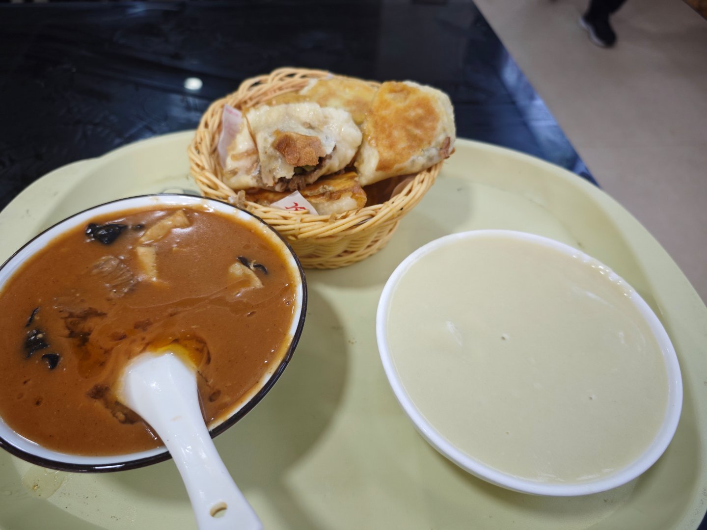 老家早餐三件套,豆粥是豆浆和小米粥熬制的,比北京豆汁类似。