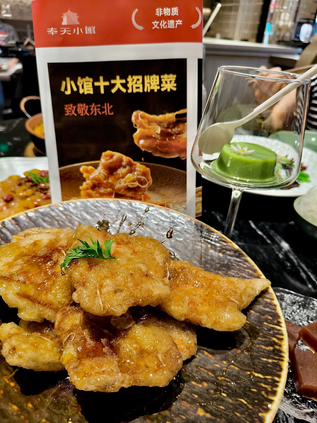 听说范丞丞去奉天小馆了,立马跟风来了。 老式锅包肉外酥里嫩,酸甜可口,不愧是大沈阳特色。 雪绵豆沙蓬松柔软,入口即化,香甜美味。 芸豆烀饼炖得烂糊又入味,大饼子都嘎嘎香。 不得不说范丞丞真会吃,确实是东北菜天花板。