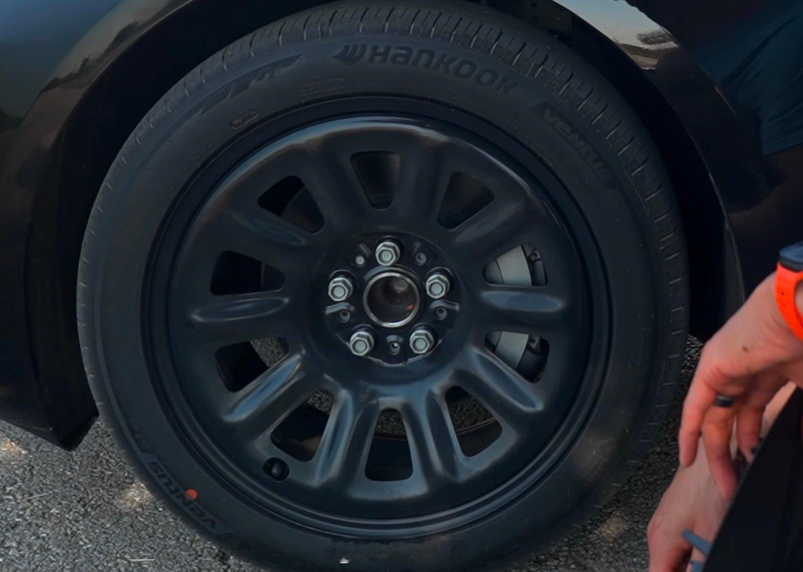 标准版 Model 3/Y那个 18 英寸去掉轮毂盖后的样子