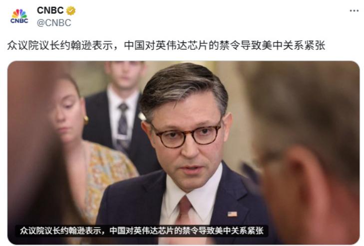 [熊猫]美国众议院议长约翰逊直言,中国禁止英伟达芯片令美中关系紧张,并称中国为美