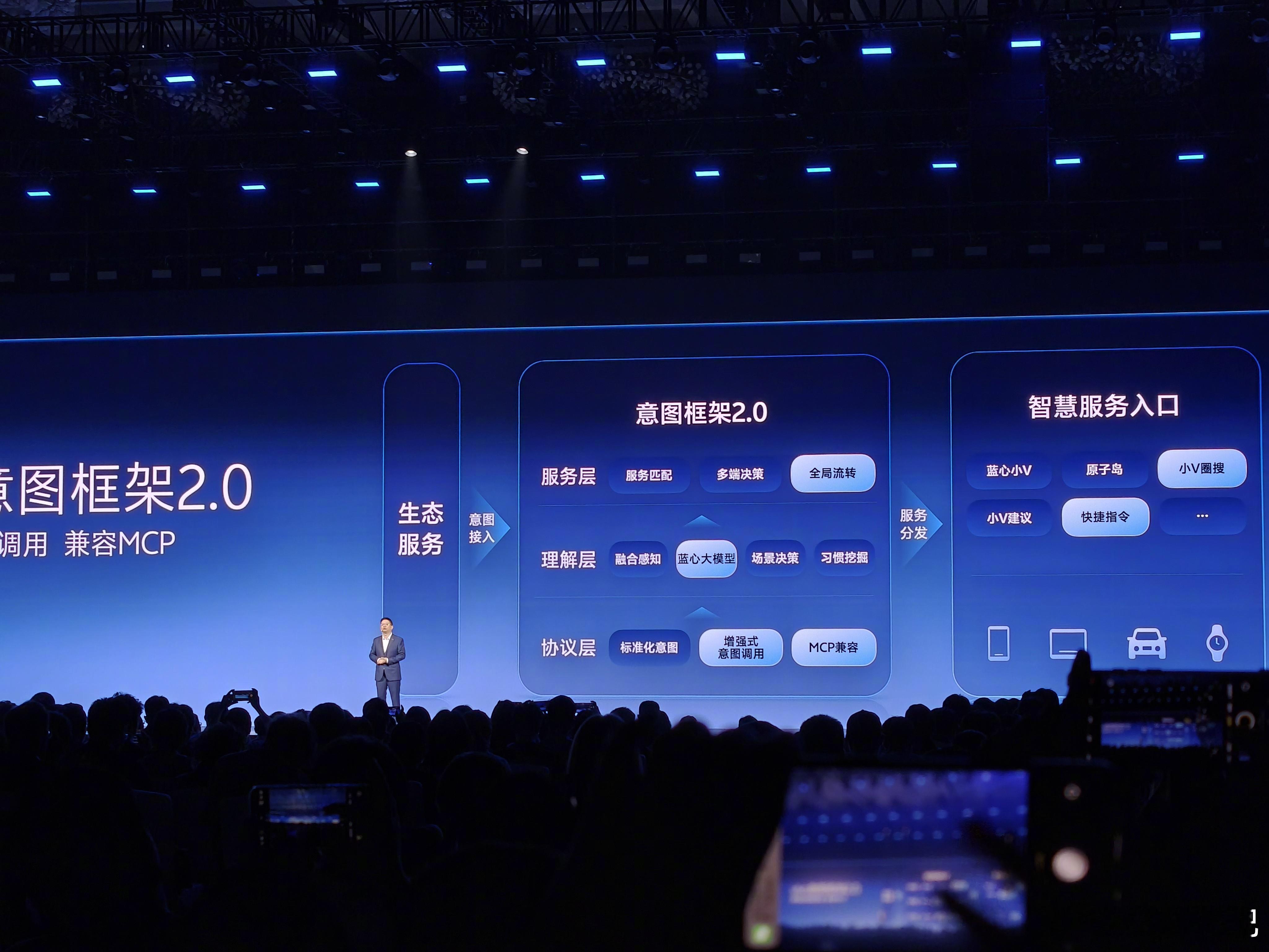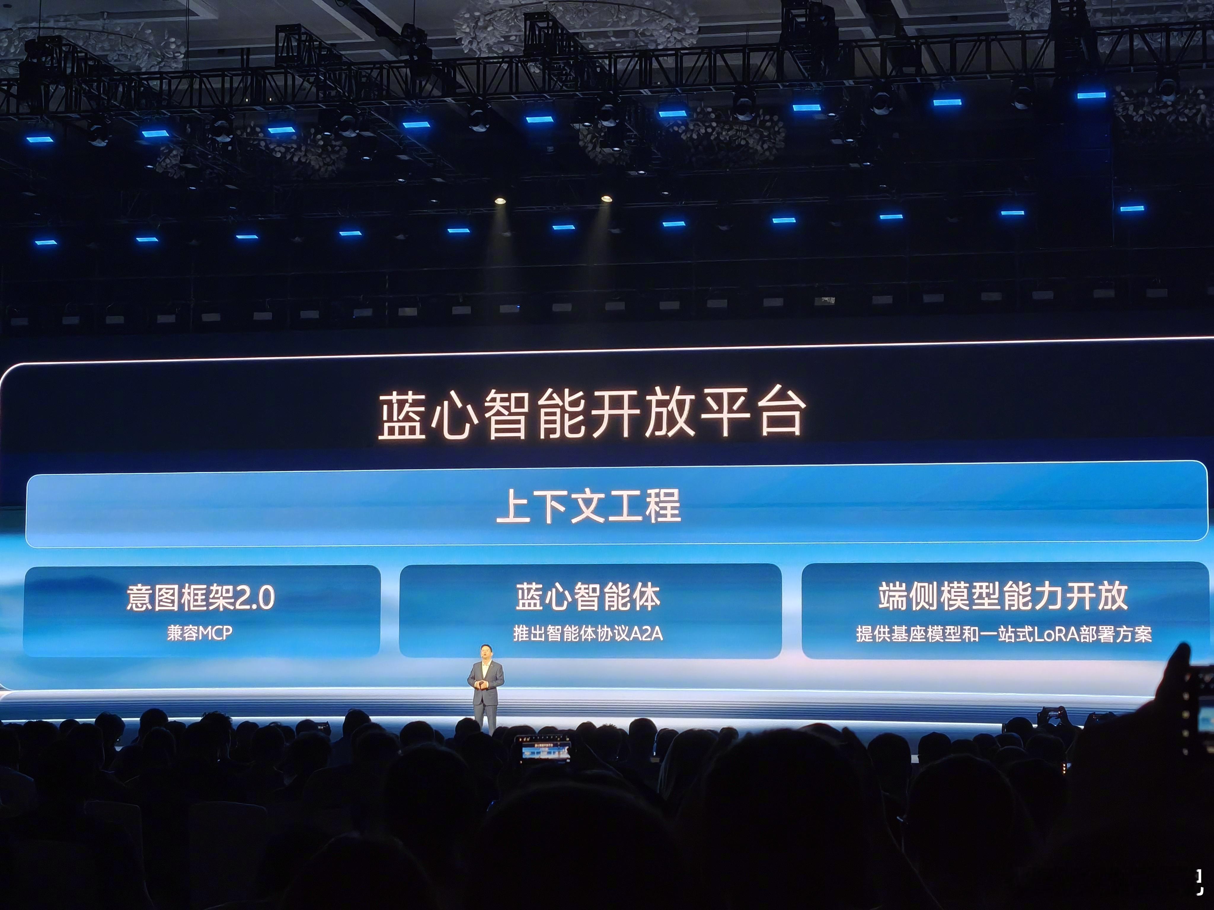 蓝心智能开发平台的上下文工程,涵盖了意图框架 2.0、蓝心智能体和端侧模型能力开放,总结而言基本就是在 AI 理解能力上有极大的提升,秒懂需求的同时也能更快调用大模型帮助用户实现直达操作。