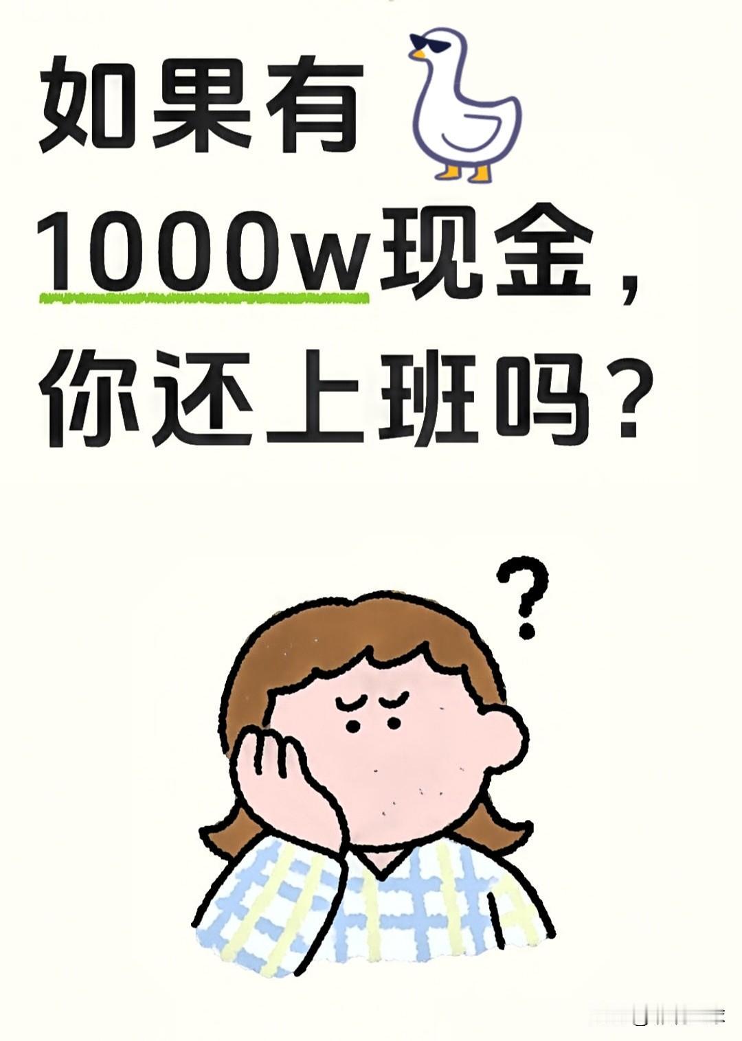 如果说你有1千万,你还会上班吗[笑哭][笑哭]有1千万我肯定不朝九晚五上班了,但