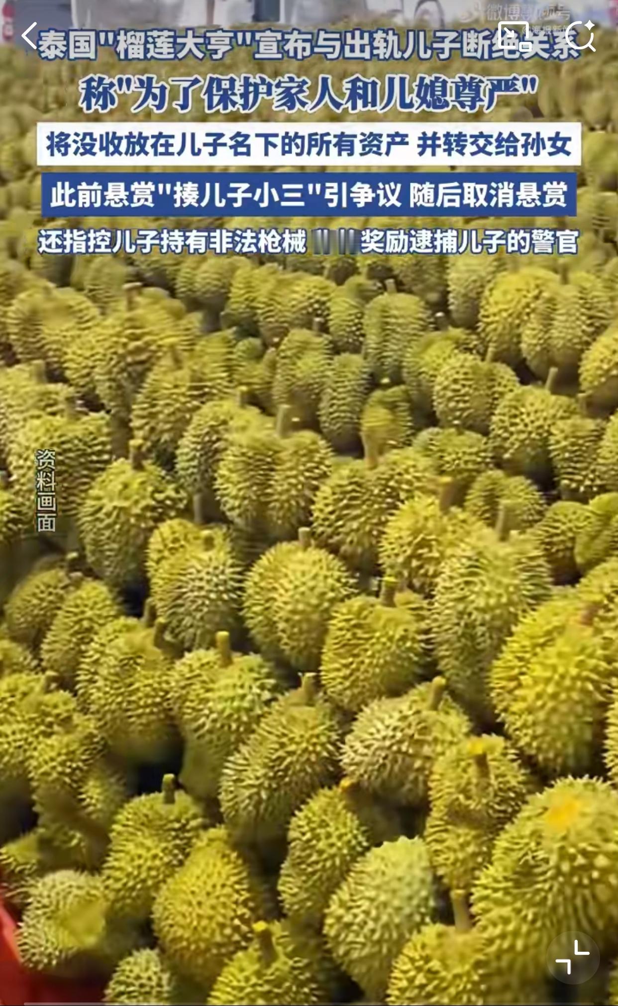 泰国榴莲大亨阿农,因儿子出轨,宣布与儿子断绝关系,事情没那么简单! 要知道泰国