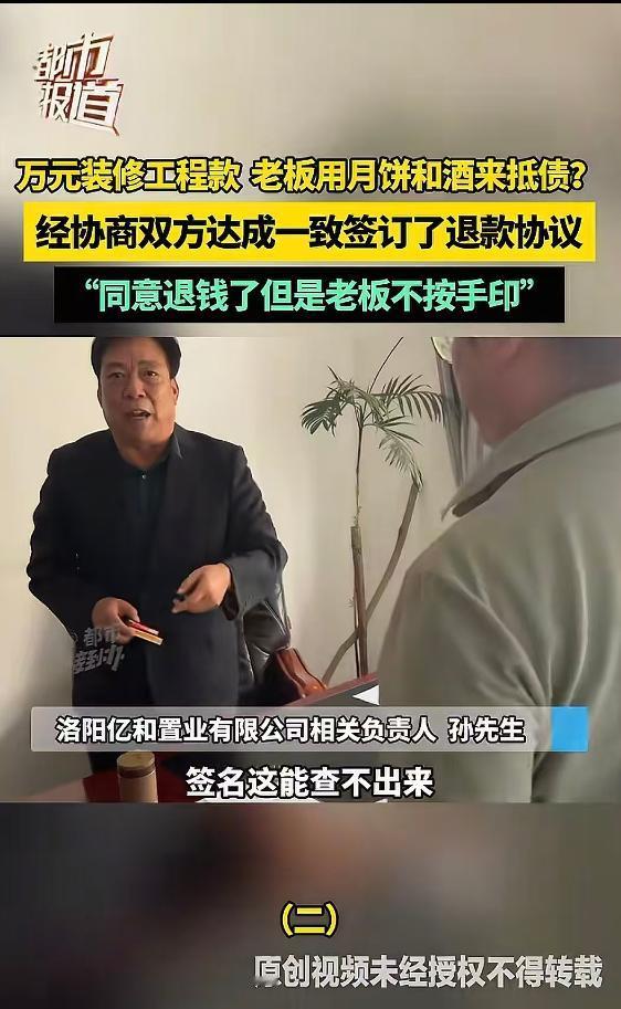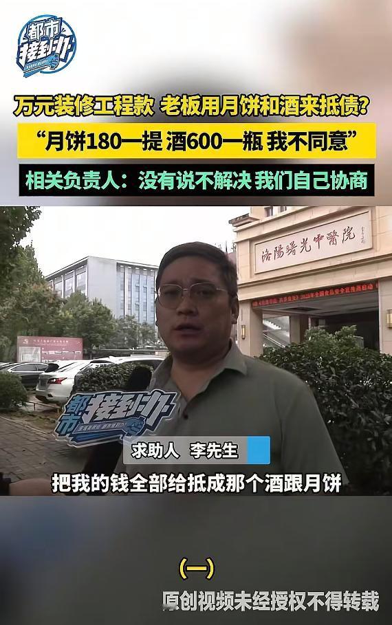 欺负老实人到这个份上!河南洛阳,李先生是一位干装修的散工,经人介绍给当地的一家中医院做装修,活干的很顺利,可没想到结工程款的时候就出了大难题,总共一万多的工程款,医院却再三推诿,最后甚至想用酒跟月饼抵债。 一想到自己辛辛苦苦带队伍干完活却赚不到钱,李先生心里就一阵憋屈。 去年四月份的时候,李先生经朋友介绍,接下了中医院的部分装修工作,当时双方约定的是在完工后就把14730的工程款一口气付清,李先生一想这么大医院不可能缺自己这仨瓜俩枣的钱,也就同意了, 没过几天,李先生便带着工人们把活干的漂漂亮亮的,对方验收的也很顺利,本以为过几天就能拿到钱了,可中医院那边一直都没有付钱的意思,李先生就坐不住了,赶紧找中医院的领导协商工程款的事情,没想到对方竟直接说“没钱”!让李先生回去等着去,啥时候有钱了啥时候给。 一句话直接给李先生说懵了,这钱虽然不多,可都是自己跟工人们的血汗钱啊,本来都跟工人们说好了,干完活就能拿钱,可现在过去了这么久都拿不到,就算自己等得及,工友们可等不起啊。 就在李先生发愁怎么要钱的时候,没想到中医院那边竟然主动了李先生,本以为会有什么好消息,没想到又是一个晴天霹雳, 医院说现在钱是拿不出来,但是可以以物抵债,把欠李先生的钱给折算成月饼和白酒,月饼是180多元一提,白酒就600多元一瓶, 听到这个消息后,李先生几乎都要崩溃了,这东西对自己和工人来说根本不实用,都是干体力活的工人,谁没事会喝这么贵的白酒啊,再说了就算东西给自己了,自己能不能转手卖出去都是两手,李先生当场拒绝了医院提出的方案,而医院看到李先生拒绝,便说要研究研究,也没了下文。 终于在李先生的持续沟通之下,中医院那边终于做出了让步,表示会在10月25日之前把工程款打给李先生,并跟李先生签订了书面协议, 可到了签字环节的时候又出岔子了,中医院的负责人在协议上签了名字,却拒绝按手印,这一下就让李先生慌了神,因为对中医院已经没有了信任,总觉得中医院背地里试着坏呢,这次签协议也是不怀好心, 无奈的李先生只能找到了调解员,希望调解员能帮忙跟医院协商,让医院负责人把手印按上,确保协议万无一失。 谁能想到,对方见到调解员之后也坚决不松口,执意表示没有按手印的规矩,哪怕调解员已经明确说了这个法律规定的,对方却耍起了无赖,对调解员跟李先生说,法律规定你就去找医院的法律部门找我没用, 无奈的调解员只能带着李先生联系了洛龙区区政府相关部门,希望通过部门监督和督促,确保医院能按协议履行还款义务。洛龙区区政府相关工作人员表示,会将李先生的情况反馈给责任部门,由责任部门核实处理并监督此事。 目前,李先生正耐心等待 10 月 25 日的还款期限,他表示,若到期仍未收到工程款,会继续通过合理途径维权,也会及时向相关部门和记者反馈进展。 此事发到网上后也引起了热议,有的网友表示:这样人品不行的医院,怎么敢放心去看病。 有的网友难以置信的表示:从未见过如此厚颜无耻之人。 也有的网友调侃说:如果患者用月饼和白酒去付医药费,医院能答应吗? 还有部分网友对事情的处理结果表示担忧,害怕李先生费了半天力气,最后钱还是要不回来。 这一万多块钱对一个大医院来说无足挂齿,可对于像李先生这样的工人来说,确实能压垮一个家庭的救命钱,欠债还钱天经地义,工人们付出的劳动,不应该被一句轻描淡写的没钱就搪塞过去,医院作为一个治病救人的地方,更应该树立诚信履约的形象,而不是像对待李先生这样,寒了人心。 素材来源:都市报道