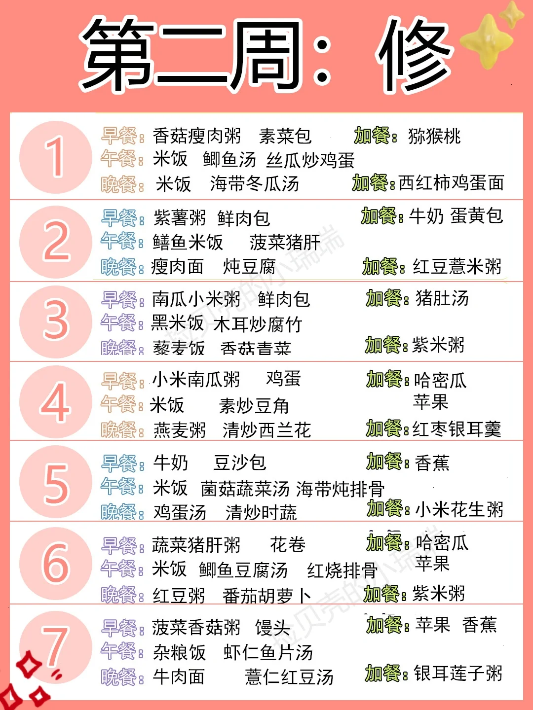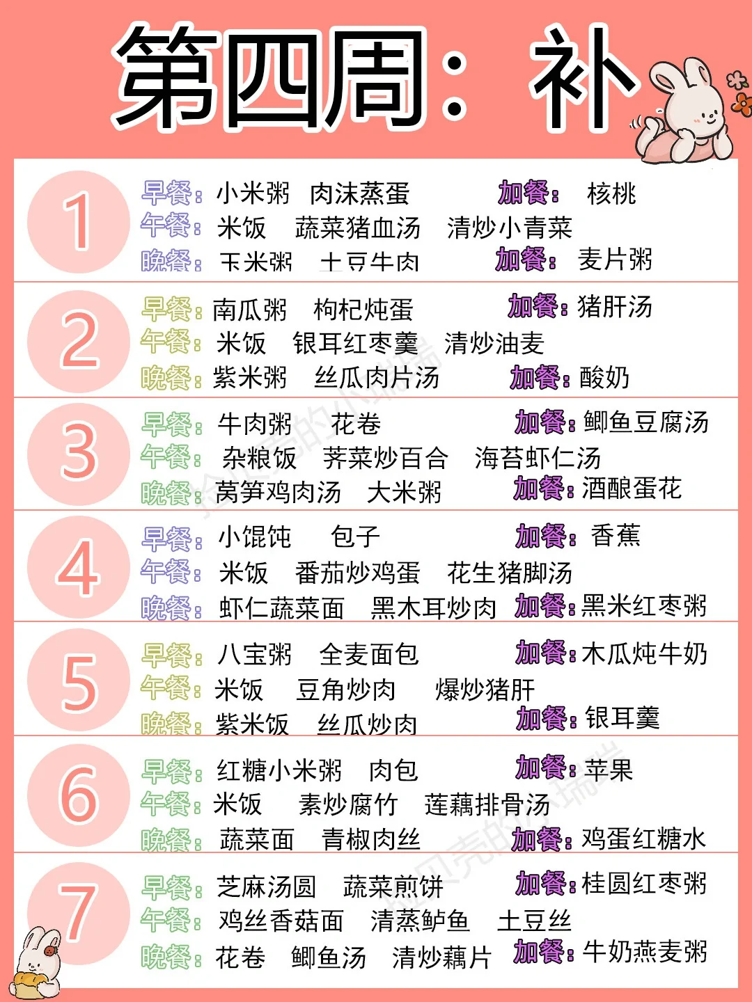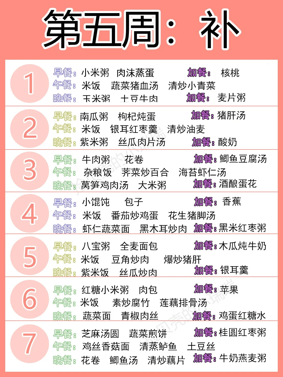现在大家都追求科学坐月子,荤素搭配 这样才有利于身体恢复 不要再按照老观念坐月子啦 . 坐月子应该满42天为宜 🔴产后1~7天:清淡为主 🔴产后第8-14天:多喝汤水,帮助下奶 🔴产后14-21天:喝下奶汤,增加奶量 🔴产后21-30天:补身体,多吃红肉 🔴产后31-42天:多吃补钙食物 . 月子期间一定不要生气,生气会回奶,而且坐月子也是为了自己的身体恢复,一定要好好做月子,其他的事情都可以交给家人帮忙的
