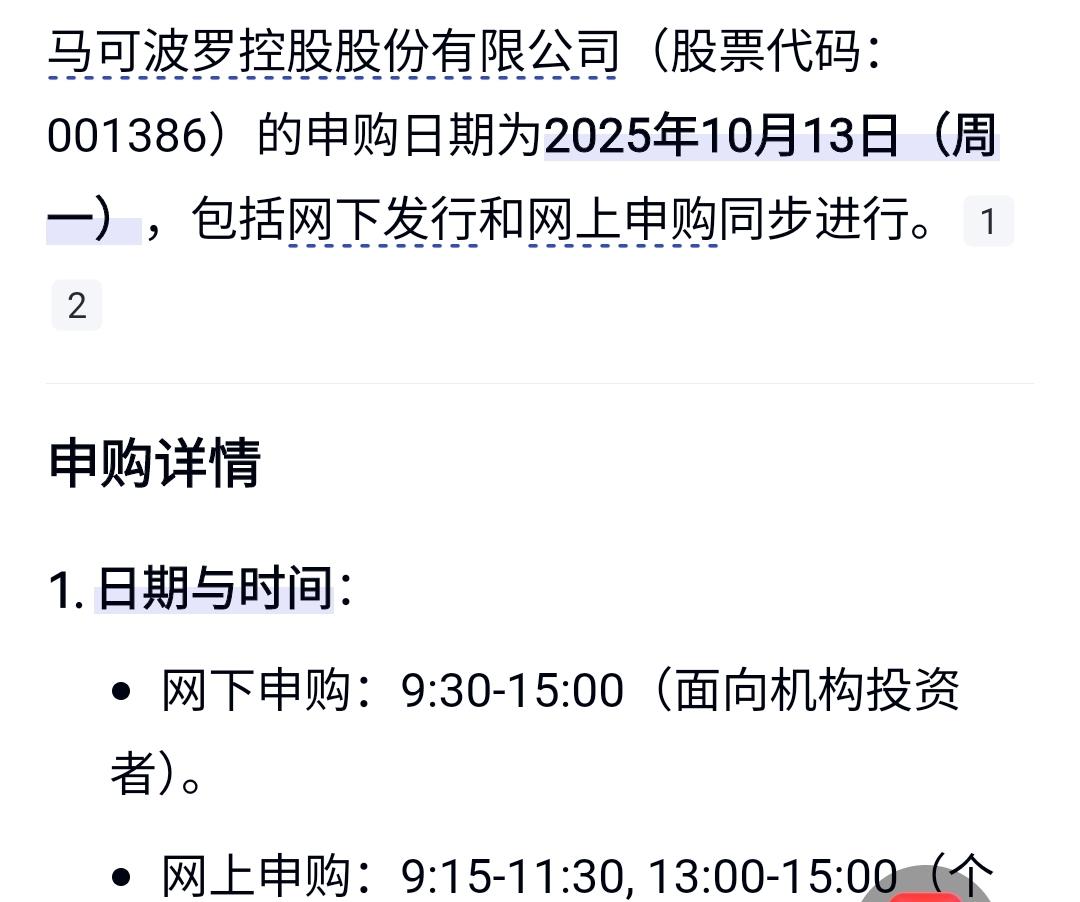 马可波罗终于还是来了:2025年10月13日,也就是下周一,马可波罗将发行申购。 申购代码001386,发行价格13.75元,上市地深交所。 不管之前它有什么前因轮转,也不管大家如何抵制,现在人家要申购,大家还是别忘了申购。 人家过关斩将,一路走到了这里,肯定有其过人之处,该申购还是要申购,反正都是上市后就卖,没必要跟钱过不去。 而且别看之前抑制的声音很大,但它最终的中签率一样不会太高。