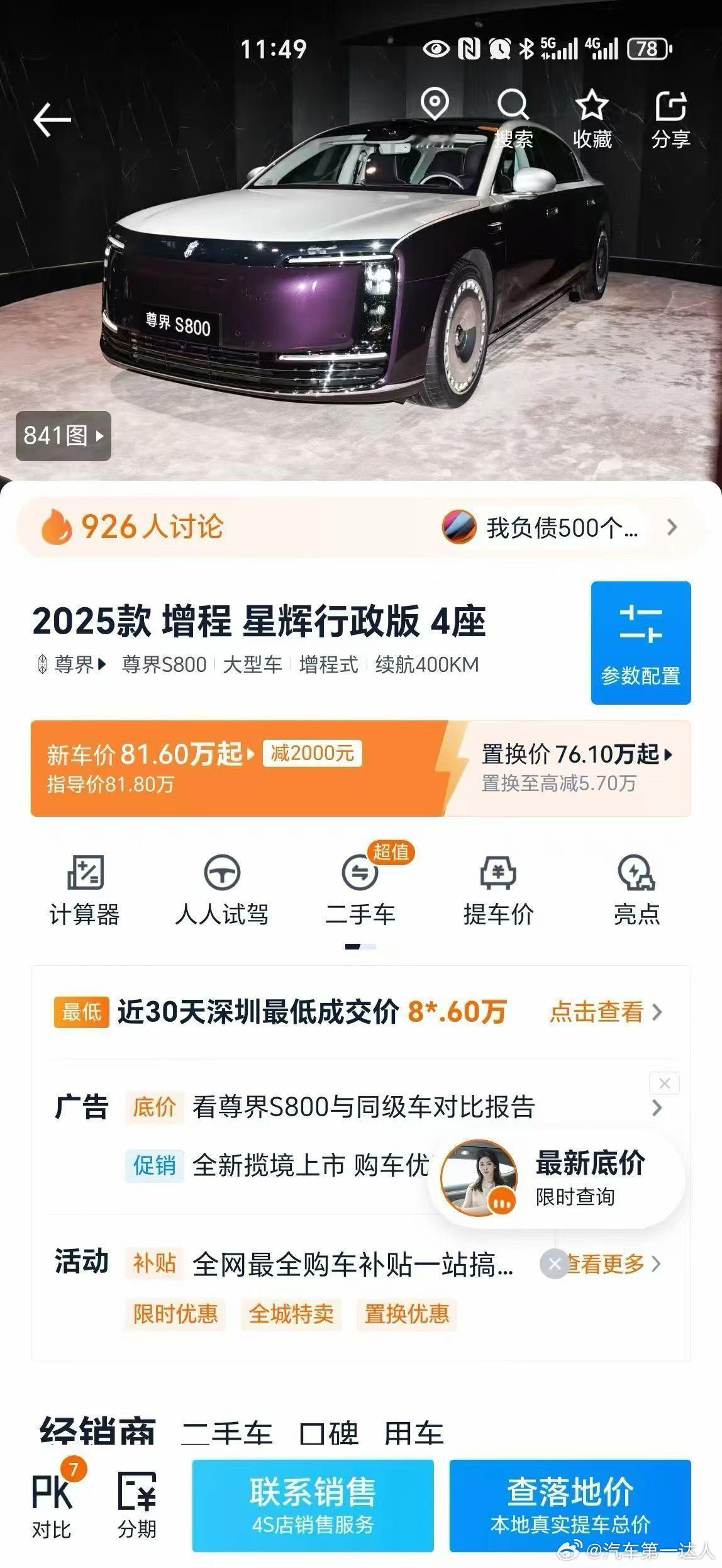 尊界S800 增程星辉行政版 4座,车主传递、寻伯乐、让爱车发光发热!25年落户,4800公里 ……