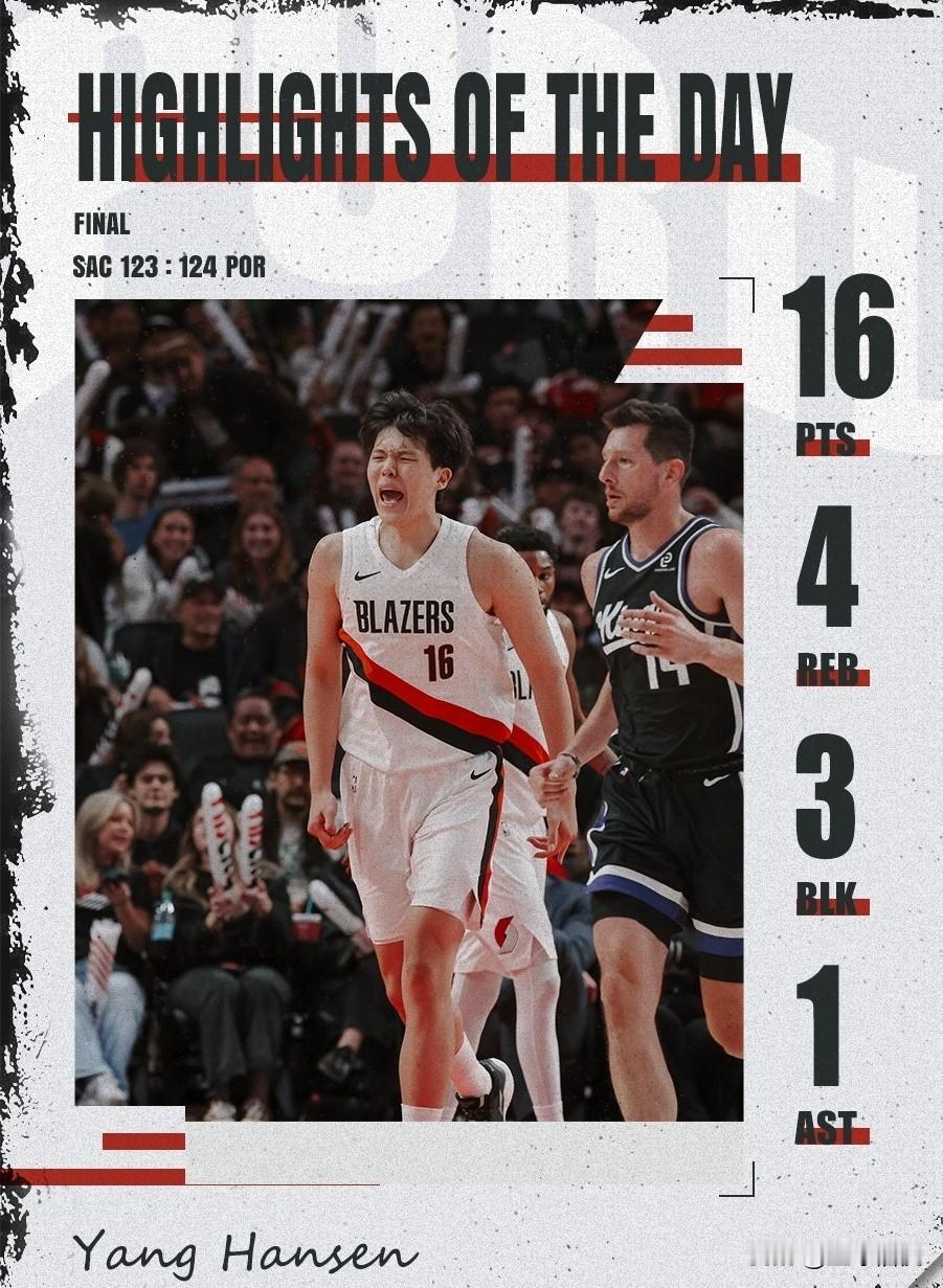 开拓者媒体已经疯狂,比卢普斯也盛赞杨瀚森,上场17分钟爆砍16分3帽,第三节连得14分引爆NBA! 当克林根五犯下场后,杨瀚森抓住机会,在第三节5投全中,三分球2中2,罚球2中2,单节砍下14分2篮板1助攻1盖帽,帮助开拓者实现反超 开拓者官方社交媒体对杨瀚森的表现反应热烈,连续发布六条推送庆祝杨瀚森的单节爆发,并写道:“瀚森陷入疯狂!”“欢迎来到撕裂之城,瀚森”。 开拓者主教练比卢普斯对杨瀚森的表现给予高度评价。赛后他表示:“传球能力和球感,这些东西我们没办法教学,你不能教的东西瀚森能做到,这简直太不可思议!” 比卢普斯的信任得到了回报,杨瀚森用百分百的命中率单节独得14分,向NBA舞台宣告了自己的到来。 从首秀挣扎到单节爆发,杨瀚森只用了几天的时间适应,中国篮球的新篇章正在波特兰悄然书写。