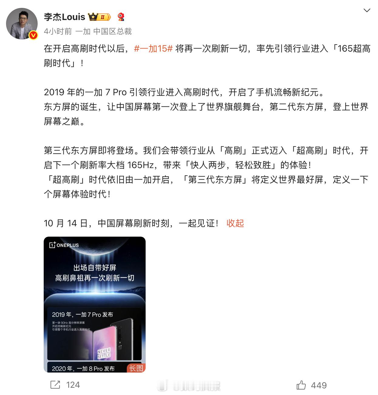 李杰:一加15率先引领行业进入「165超高刷时代」,「快人两步,轻松致胜」