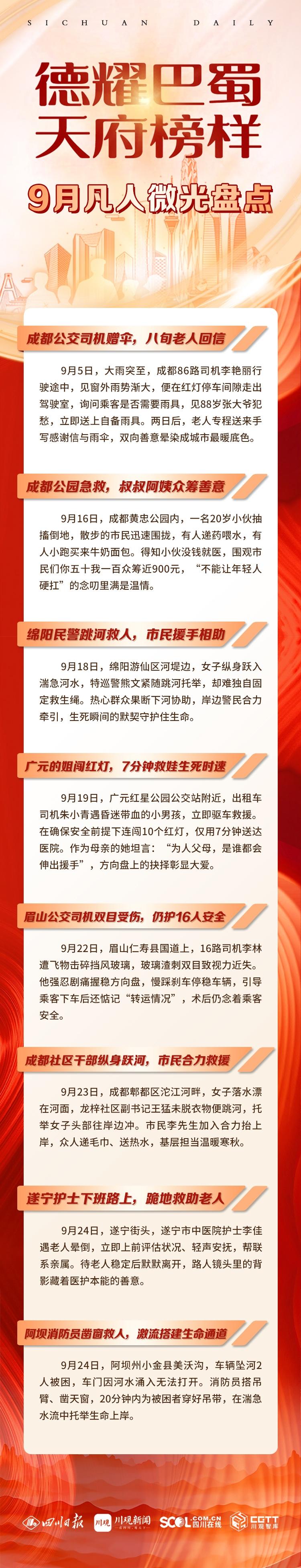 这些“凡人英雄”来自四川各地、不同行业,却用同样的坚守与善意,在9月的巴蜀大地,勾勒出一幅幅温暖人心的画卷。
