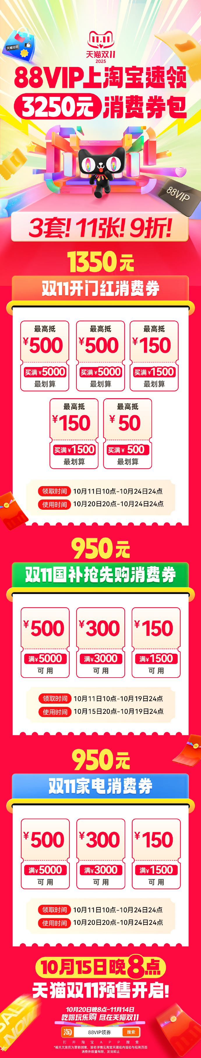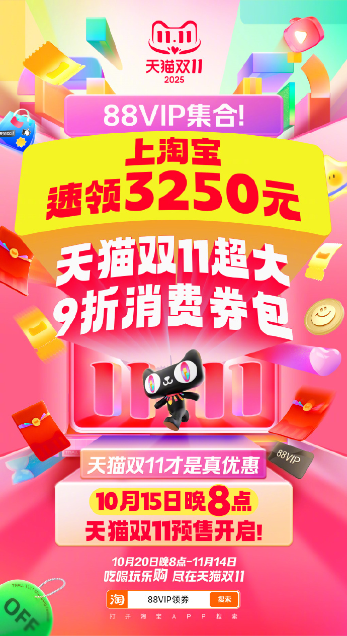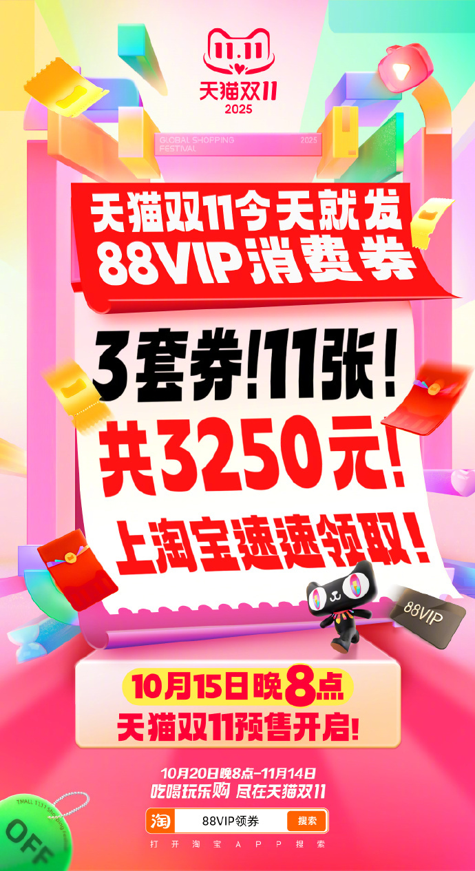 出门在外身份都是自己给的,以后请称呼我为天猫88VIP消费券主理人~不允许你们还不知道天猫双11开门红消费券今天就能领!3套券!11张!天猫双11今天就补3250元 88VIP现在上淘宝搜“88VIP领券”,直接无痛拿下3250元88VIP9折消费券包!!立减叠券省上加省,实惠力度直接拉满! 天猫双11才是真优惠天猫双11