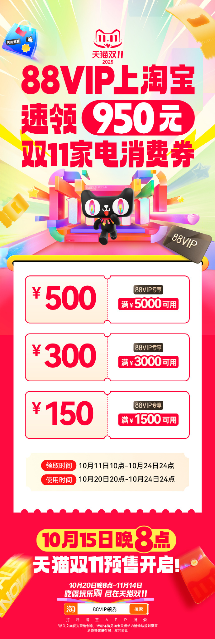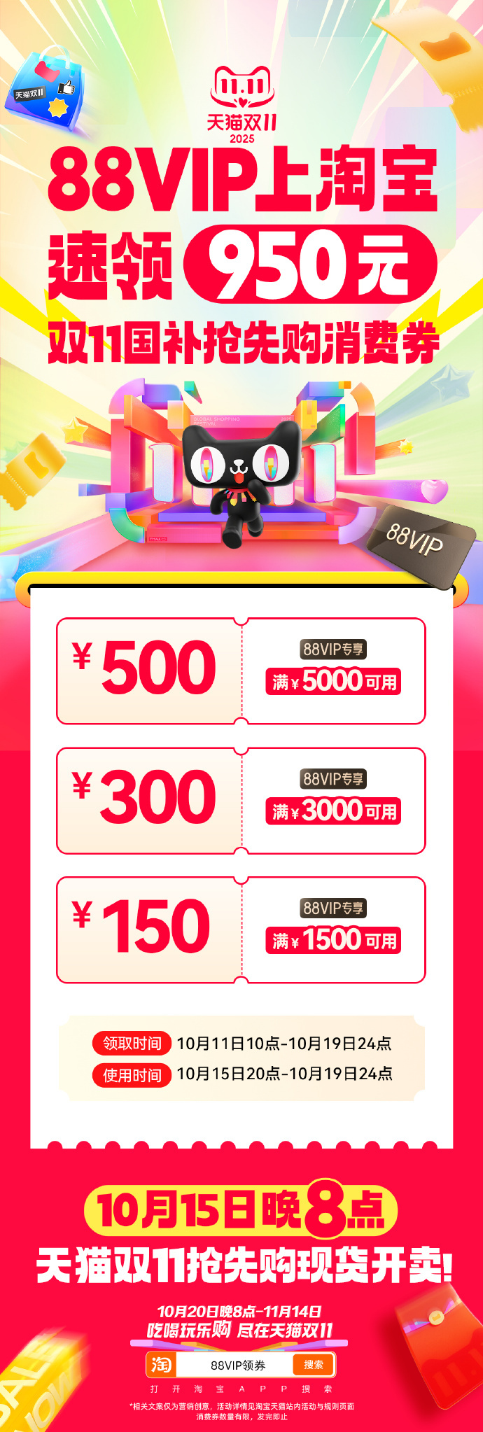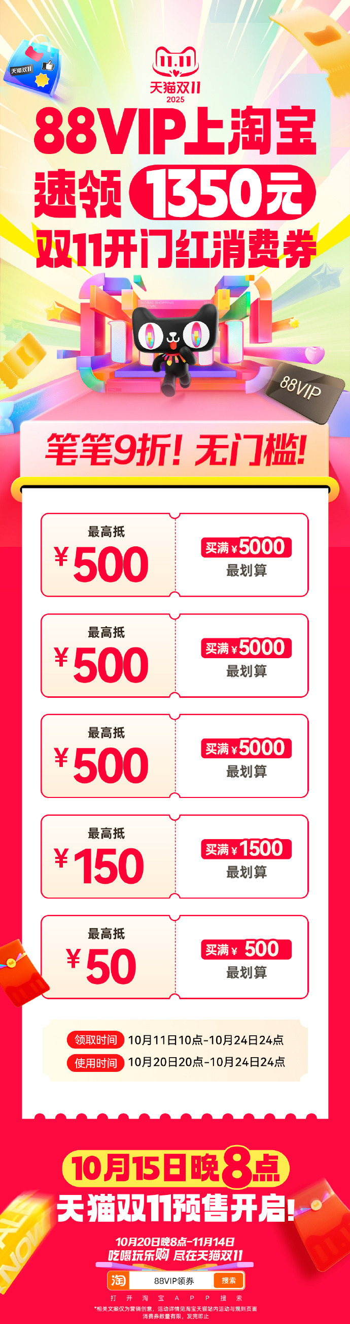 出门在外身份都是自己给的,以后请称呼我为天猫88VIP消费券主理人~不允许你们还不知道天猫双11开门红消费券今天就能领!3套券!11张!天猫双11今天就补3250元 88VIP现在上淘宝搜“88VIP领券”,直接无痛拿下3250元88VIP9折消费券包!!立减叠券省上加省,实惠力度直接拉满! 天猫双11才是真优惠天猫双11