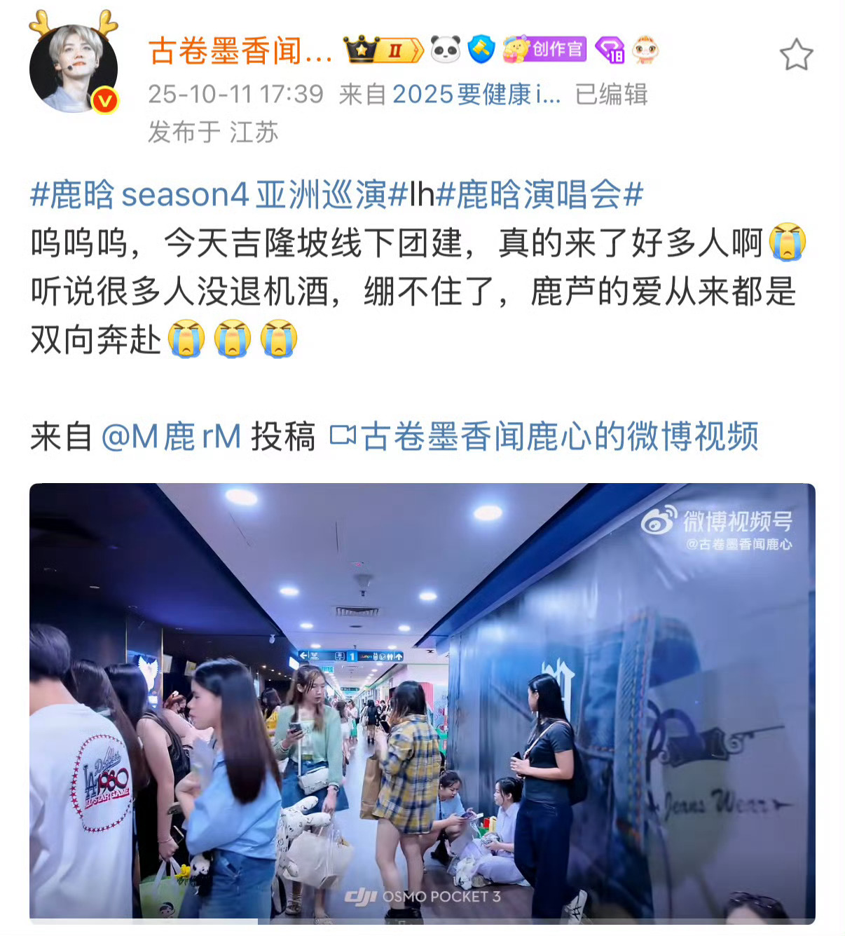 看到大家好多人都没有退吉隆坡的票还举行了团建好感动啊鹿晗大家都很爱你会见面的你要