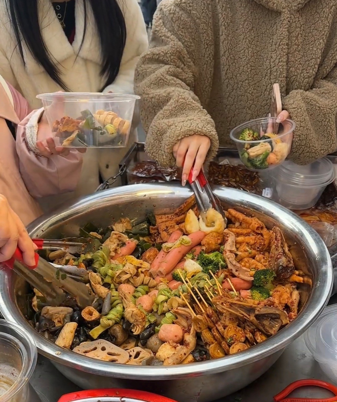 摊主女儿大口吃父母摊位剩食走红自己的女儿都吃,说明食品安全,可以放心吃,而且也
