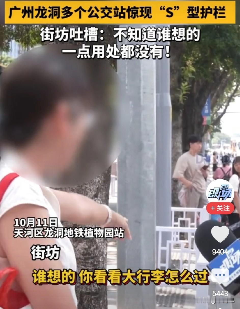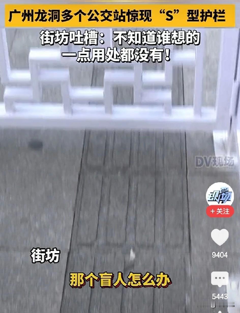 大姐,你错了。 S型护栏用处很多, 1.防止醉驾冲向站台上等车的人, 我们这里有先例。 2.市政有多出一笔开销, 铁艺厂多一笔订单, 安装工多一笔收入。(多少未知) 3.“带行李的人锻炼了身体”哼。 不过怎么说, 你安装到盲道上确实不应该, 让盲人朋友们怎么走, 本来有人没素质的人乱停车, 你到好直接按护栏。