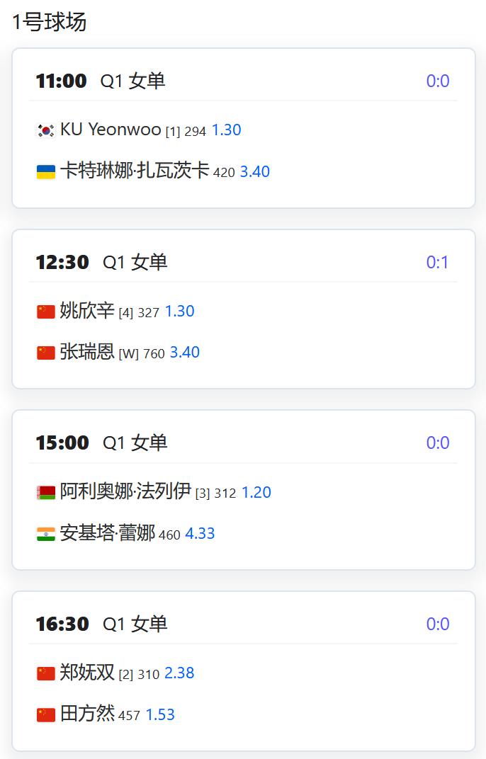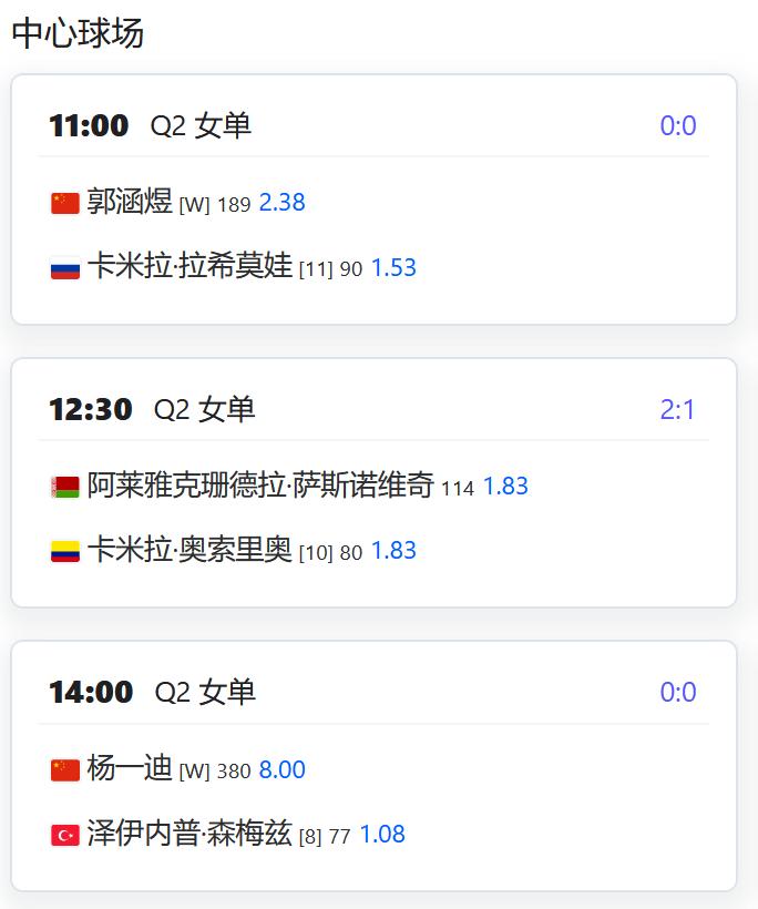 今日赛程: WTA500赛宁波站,女单资格赛决胜轮,郭涵煜将与拉希莫娃争夺一个正