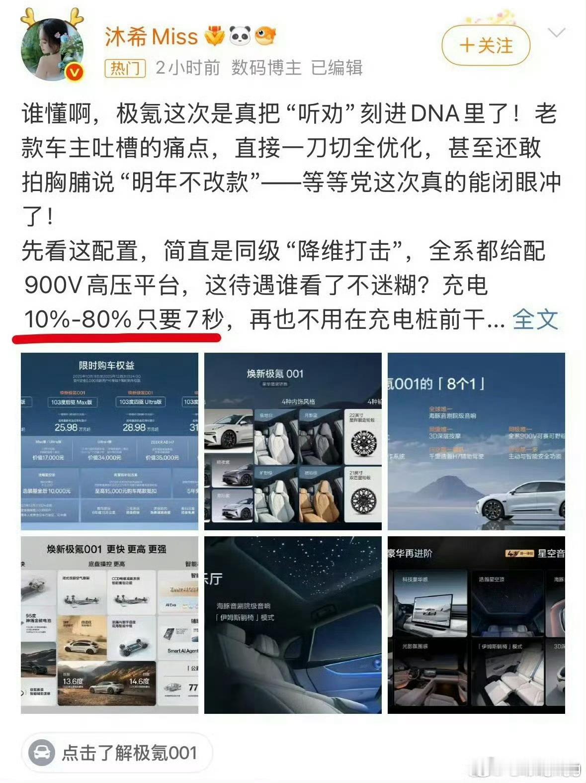 极氪001极氪001「7秒 10%-80%」充电速度,我甚至怀疑根本不是通稿出错漏,而是故意的一次“反向营销”[笑cry]