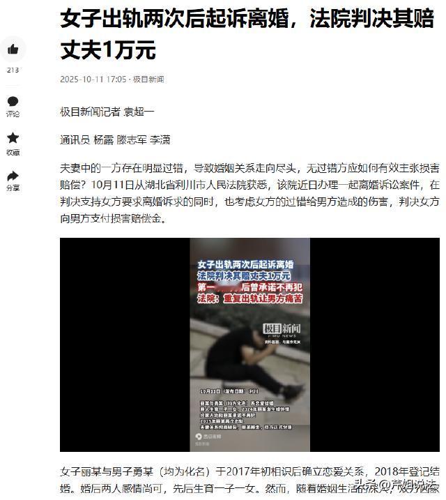 湖北利川,女子丽某和男子勇某经人介绍恋爱后结了婚,婚后育有一子一女,因经济压力和子女教育观念的差异,感情慢慢变淡后丽某有了婚外情,被抓现行后承诺不再犯,勇某当时也原谅了她,几个月后丽某再次出轨被抓了现行,夫妻开始分居,丽某起诉离婚,勇某要求赔偿,勇某的诉求会得到支持吗? 据悉,2017年初,经人牵线丽某和勇某初次见面,两人觉得也很投缘,次年,携手领证后步入正式的婚姻。 婚后不久,可爱的儿子降临,为这个家增添了许多欢乐。又过了几年,女儿也呱呱坠地,一儿一女,凑成了一个好字,一家人的生活也很幸福。 随着孩子渐渐长大,孩子上学的费用、生活的各项开支,让这个家庭的经济变得紧张起来。 而且,两人在子女教育观念上,分歧越来越大。 勇某觉得孩子应该多吃苦,多锻炼,将来才能有出息。可丽某却心疼孩子,舍不得让孩子受一点委屈,总想给孩子最好的。 两人为此经常争吵,又都不擅长沟通,每次都是不欢而散。 慢慢地,曾经甜蜜的感情就出现了各种问题,彼此之间的信任,也在一次次争吵中逐渐荡然无存。 2024年的一天,勇某发现丽某和一个陌生男人走得很近,举止亲密。经过他一番调查,才发现丽某有了婚外情。 家人知道后,纷纷劝和,丽某也是向勇某保证,以后绝对不会再犯这样的错误,会和他好好过日子。 勇某看着年幼的孩子,想到曾经的美好,决定给丽某一次机会。 可是,信任一旦破碎,就很难再修复。 勇某的心里始终有个疙瘩,对丽某的态度也大不如前,两人之间的交流越来越少。 2025年,勇某再次发现丽某出轨的证据,这一次,他彻底绝望了。 而丽某,或许是觉得日子实在过不下去,或许是找到了新的依靠,她直接搬了出去,和勇某正式分居。 分居后不久,丽某以感情破裂为由,起诉离婚。 勇某接到离婚的传票时,也是毫无犹豫地同意了离婚。 但他提出了自己的诉求,他觉得自己在这段婚姻中受到了极大的伤害,要求丽某给予赔偿,说她有重大过错。 那么,从法律角度,丽某的行为是否违法,勇某的赔偿诉求能否得到支持呢? 1,丽某的行为,会受到什么样的处罚呢? 在婚姻关系里,夫妻之间有相互忠诚的义务。 民法典第一千零四十三条规定,家庭应当树立优良家风,弘扬家庭美德,重视家庭文明建设。夫妻应当互相忠实,互相尊重,互相关爱。 丽某在婚姻存续期间,2024年出现婚外情,这明显违反了夫妻间相互忠实的义务。 之后2025年再次出轨,这种行为严重破坏了婚姻关系。 不过,单纯的婚外情行为,一般不属于刑事犯罪范畴,不会受到刑事处罚。 但从民事角度,丽某的过错行为与离婚有直接关联。 民法典第一千零九十一条规定,有下列情形之一,导致离婚的,无过错方有权请求损害赔偿: (一)重婚; (二)与他人同居; (三)实施家庭暴力; (四)虐待、遗弃家庭成员; (五)有其他重大过错。 丽某两次出轨的行为,虽不属于前面明确列举的重婚、与他人同居等情形,但可认定为有其他重大过错。 因为她的行为违背了夫妻忠诚义务,对勇某造成了精神上的伤害,破坏了家庭关系的稳定,是导致夫妻感情破裂、婚姻走向终结的重要因素。 勇某作为无过错方,有权依据上述法律规定,向丽某主张损害赔偿。 最终,经过审理,认为丽某和勇某婚后因经济等问题感情变淡,且丽某两次出轨,导致感情彻底破裂,双方已无法正常交流,勇某也同意离婚,所以支持了丽某的离婚诉求。 对于勇某主张的损害赔偿,综合考量后,判定丽某支付10000元损害赔偿金。 一段曾经美好的婚姻,就这样在矛盾和背叛中走向了尽头。 您对这件事有什么看法呢? 信源:、极目新闻等