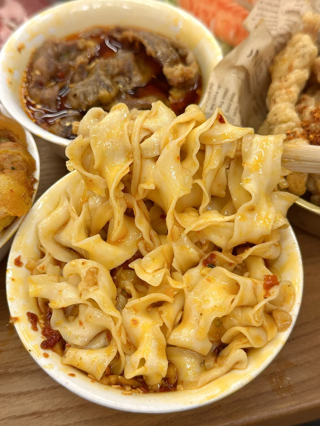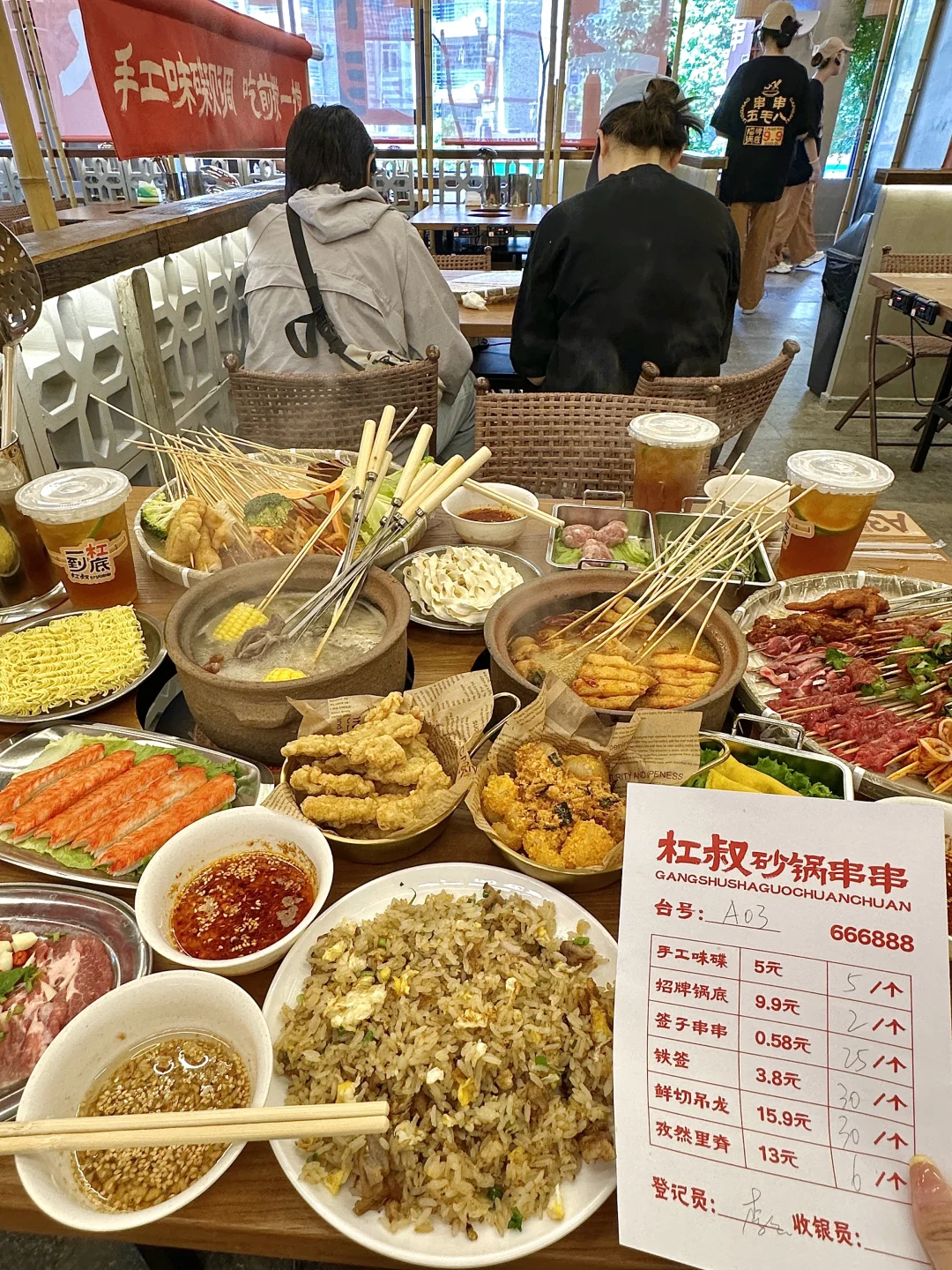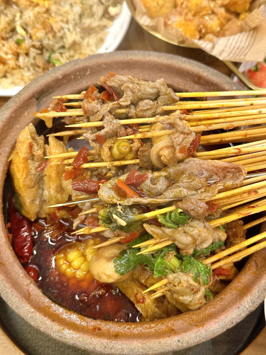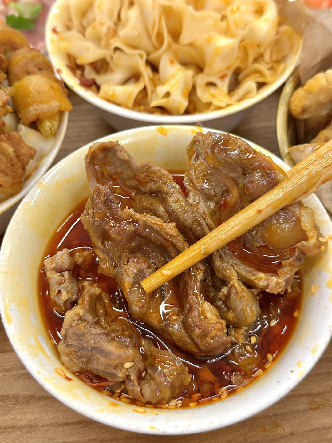 真的名不虚传!感谢长沙本地人安利!! 0.58r/串鲜切牛肉、3.8r/串五花趾,我可以吃一辈子!牛骨鲜汤锅底煮出来好鲜啊啊啊😭还有蘸料!感觉配啥都一口惊艳那种~果然好吃的店都藏在老巷子里。。。(叫:杠叔砂锅串串)