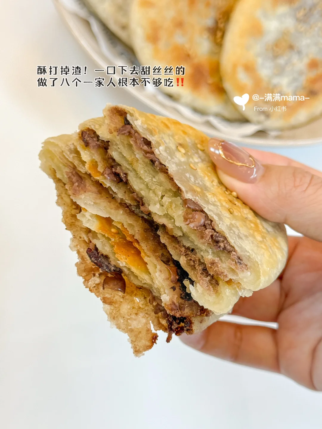 Hi~大家好呀~今天给我儿子做了甜丝丝的豆沙酥饼,第一次尝试做酥饼,意外的成功!!!
