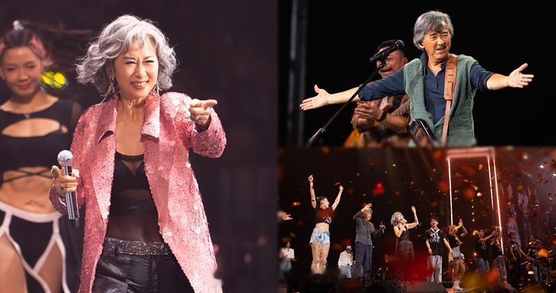 林子祥(阿Lam)和叶蒨文(沙丽)《白头到老WE ARE ONE世界巡回演唱会》香港站,昨晚(11日)来到第3场,全场爆满,气氛劲high!台下星光熠熠,薛家燕、郭伟亮、杨受成及太太陆小曼、俞琤、曾比特与女友、陈欣健、谭耀文及太太、贾思乐、田北辰、查小欣及马来西亚歌手龚柯允等撑场。