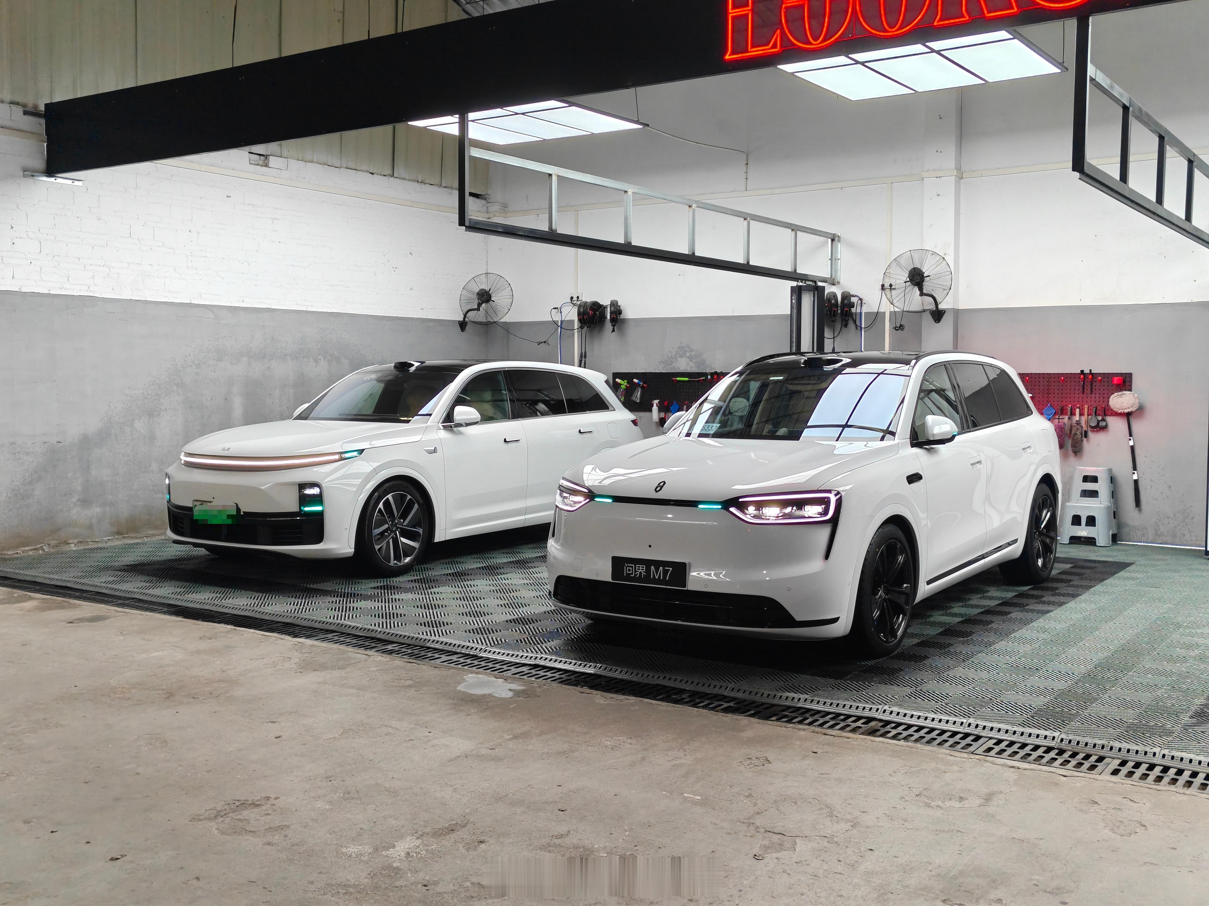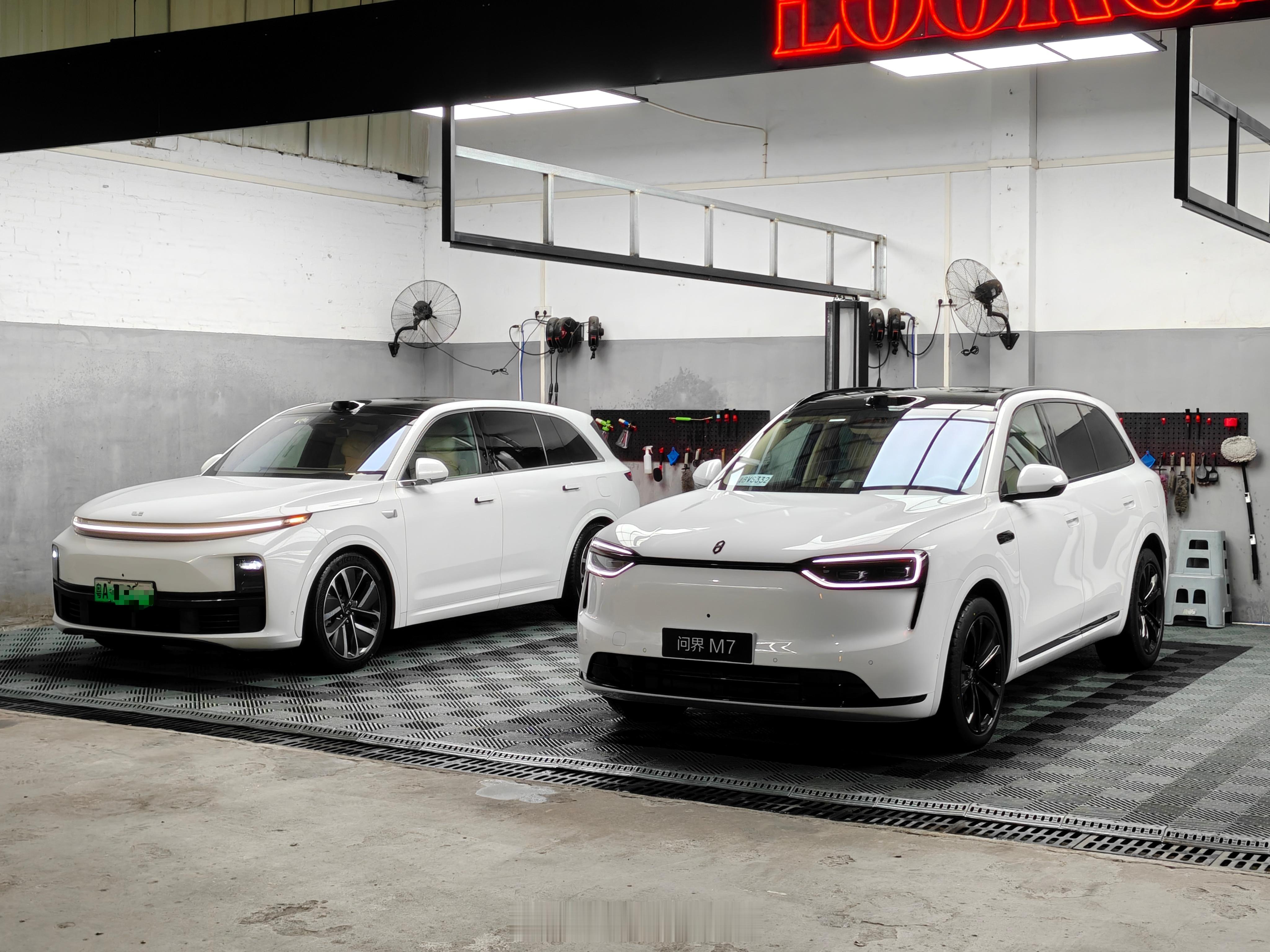没想到新问界 M7 比理想 L7 看着大了一圈,黑化套件也很精神。