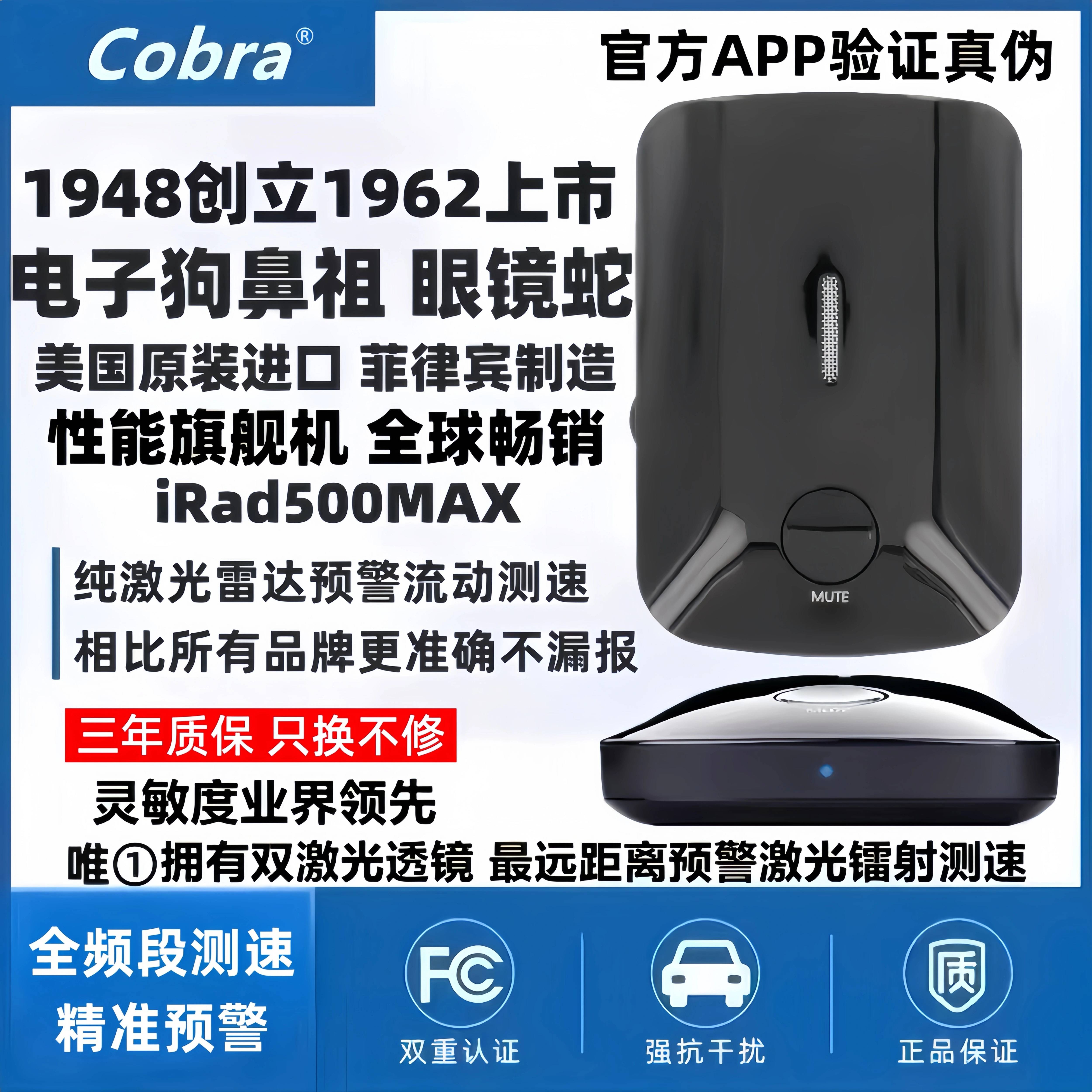电子狗鼻祖美国进口Cobra眼镜蛇旗舰irad500MAX雷达探测器是最准确最好的电子狗,准确预警所有流动/移动/箱式/尾测/手持雷达枪等激光镭射雷达测速。预警距离业界最远可以从 500米到 3000米,表现出探测灵敏度高,抗干扰能力强,两者互补优势平衡的特点,经过全球和中国国内广大车主使用实践,获得了普遍的认可和肯定。由美国眼镜蛇唯一菲律宾工厂制造