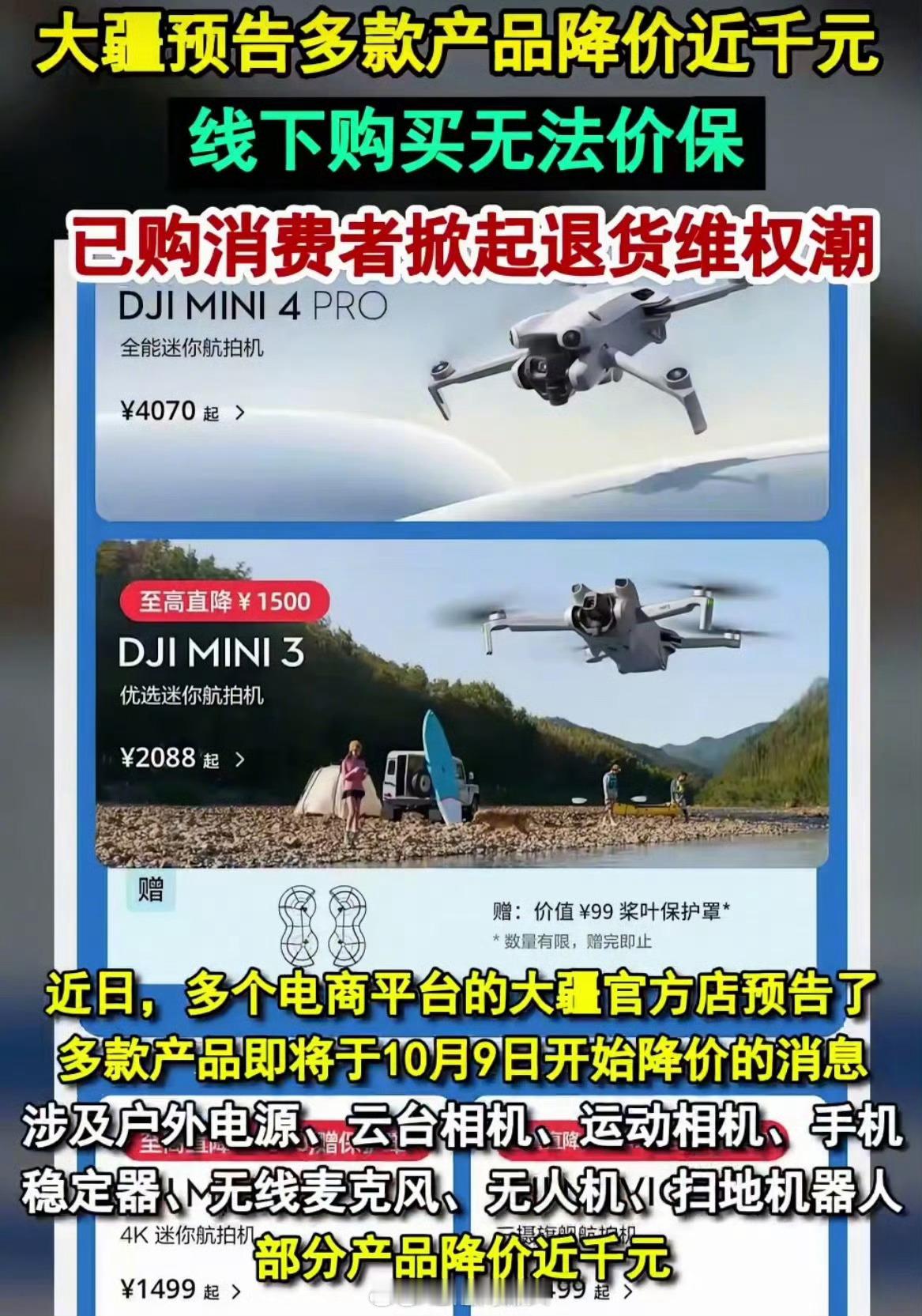 大疆部分深圳大疆门店开放退差价,限时一周有效。这是因为大疆“双十一”促销,多款产