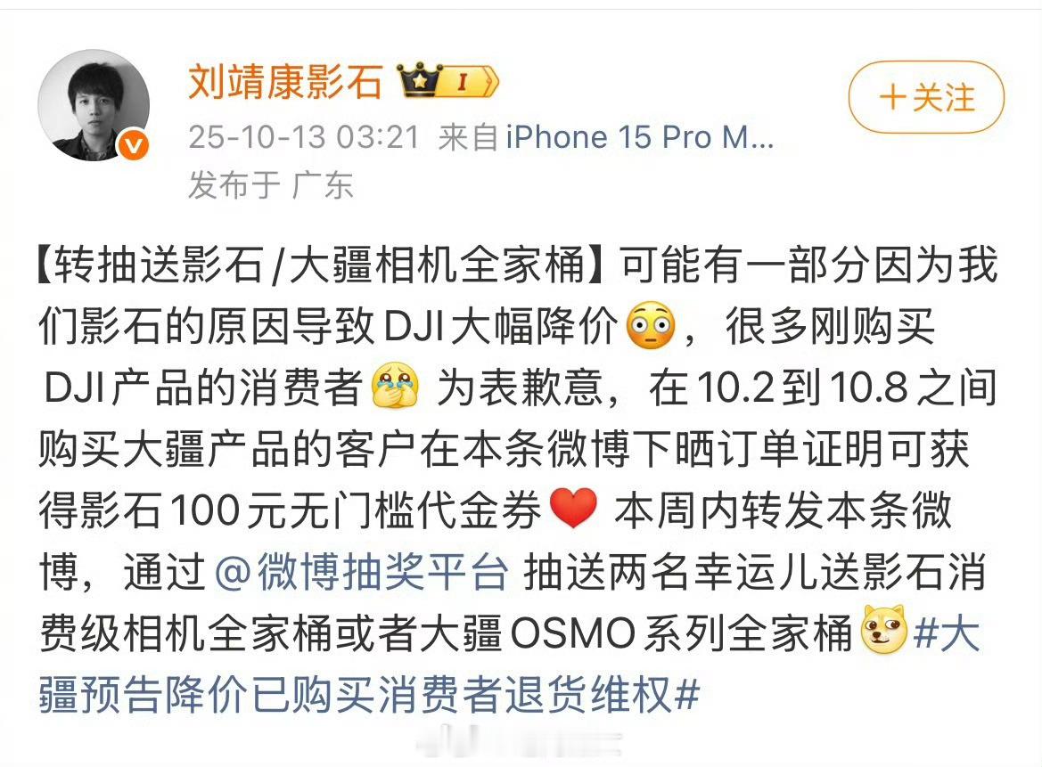 大疆大幅降价引争议,影石CEO居然出来道歉了[吃惊]