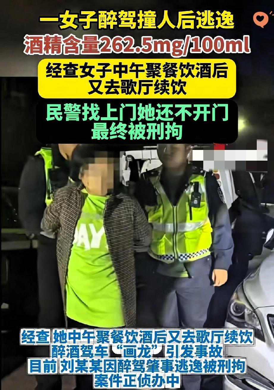 大庆醉驾女撞人逃逸:262.5mg/100ml的酒精里,藏着对生命的漠视! 一女子中午聚餐喝酒,还跑去歌厅续饮,揣着262.5mg/100ml的酒精含量开车,在大庆龙凤区撞倒3名行人里的2人,其中1人被撞引擎盖后掉落还遭车轮两次碾压! 更离谱的是,民警找上门她还敢不开门! 这哪是醉驾,这简直是拿着方向盘当凶器! 酒精上头不是漠视生命的借口,聚餐续摊也不是违法犯罪的遮羞布。 想想那被碾压的行人,想想家属的崩溃,这背后是对规则的完全践踏,对他人生命的极致冷漠。 咱们常说“喝酒不开车,开车不喝酒”,可总有人把警示当耳旁风。 你说这种人被刑拘冤吗?你对这种醉驾逃逸行为怎么看?来评论区聊聊,咱们一起给生命和规则“站岗”!