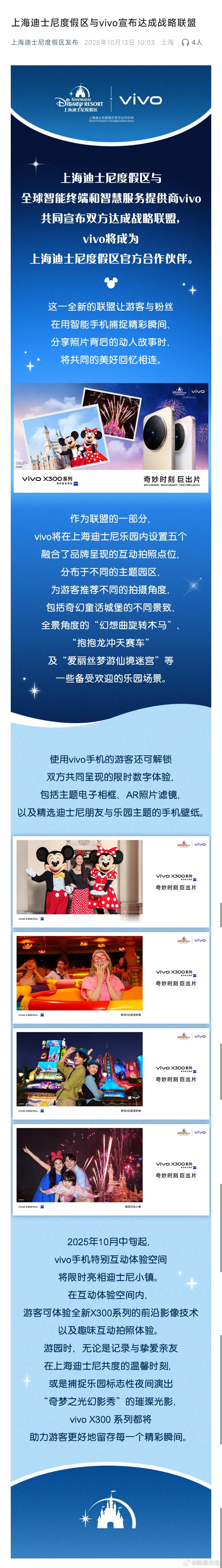 上海迪士尼度假区宣布与vivo达成战略联盟。