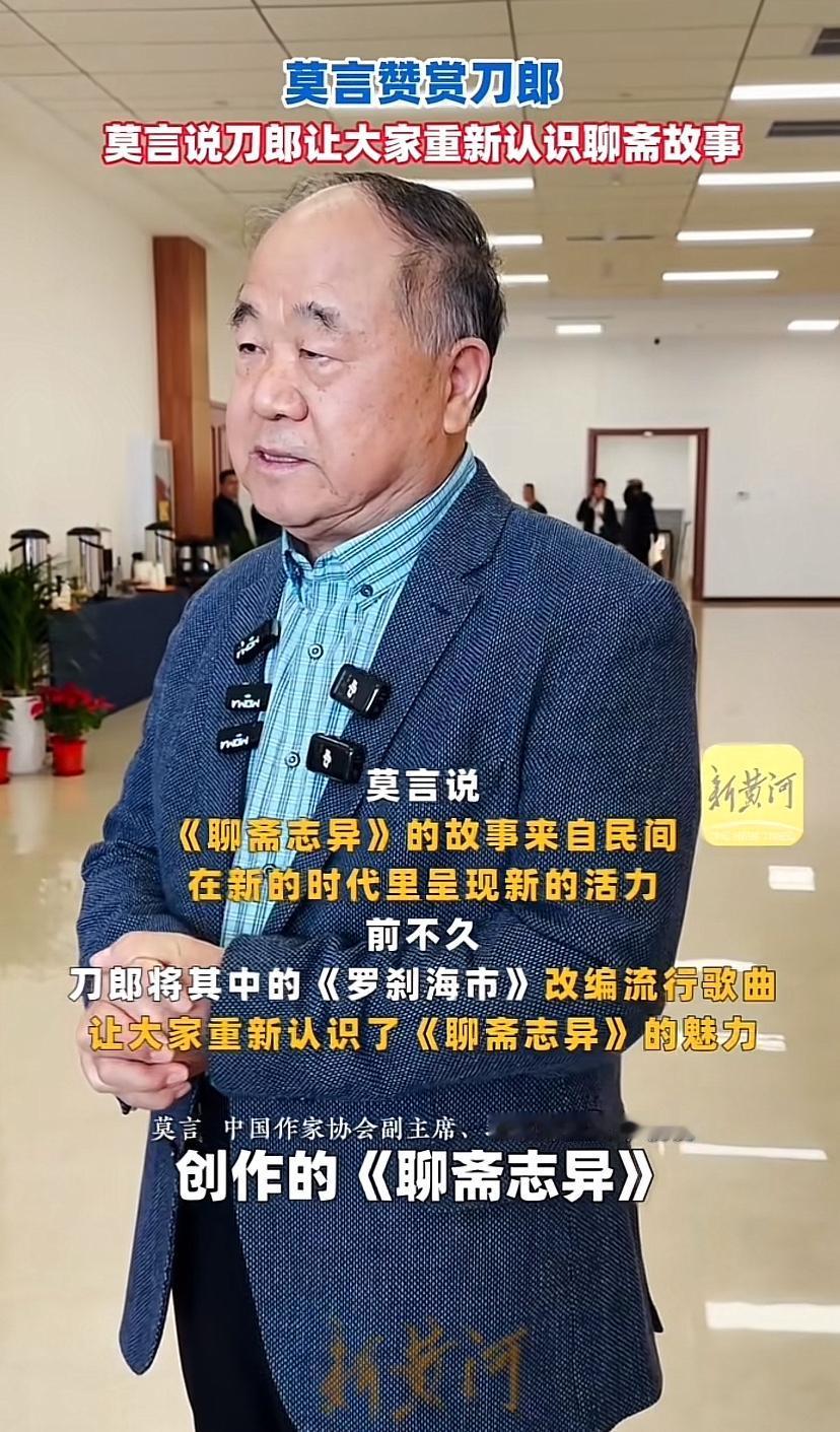大师认可大师!莫言赞赏刀郎,谈到罗刹海市与聊斋志异,说明他认可这首歌的文学价值。莫言应该根据古代名著写一首好词出来,与刀郎合作一把,用类似山东的民歌形式演绎。这些年好像山东没诞生出什么有名的词曲,大有挖掘的潜力。