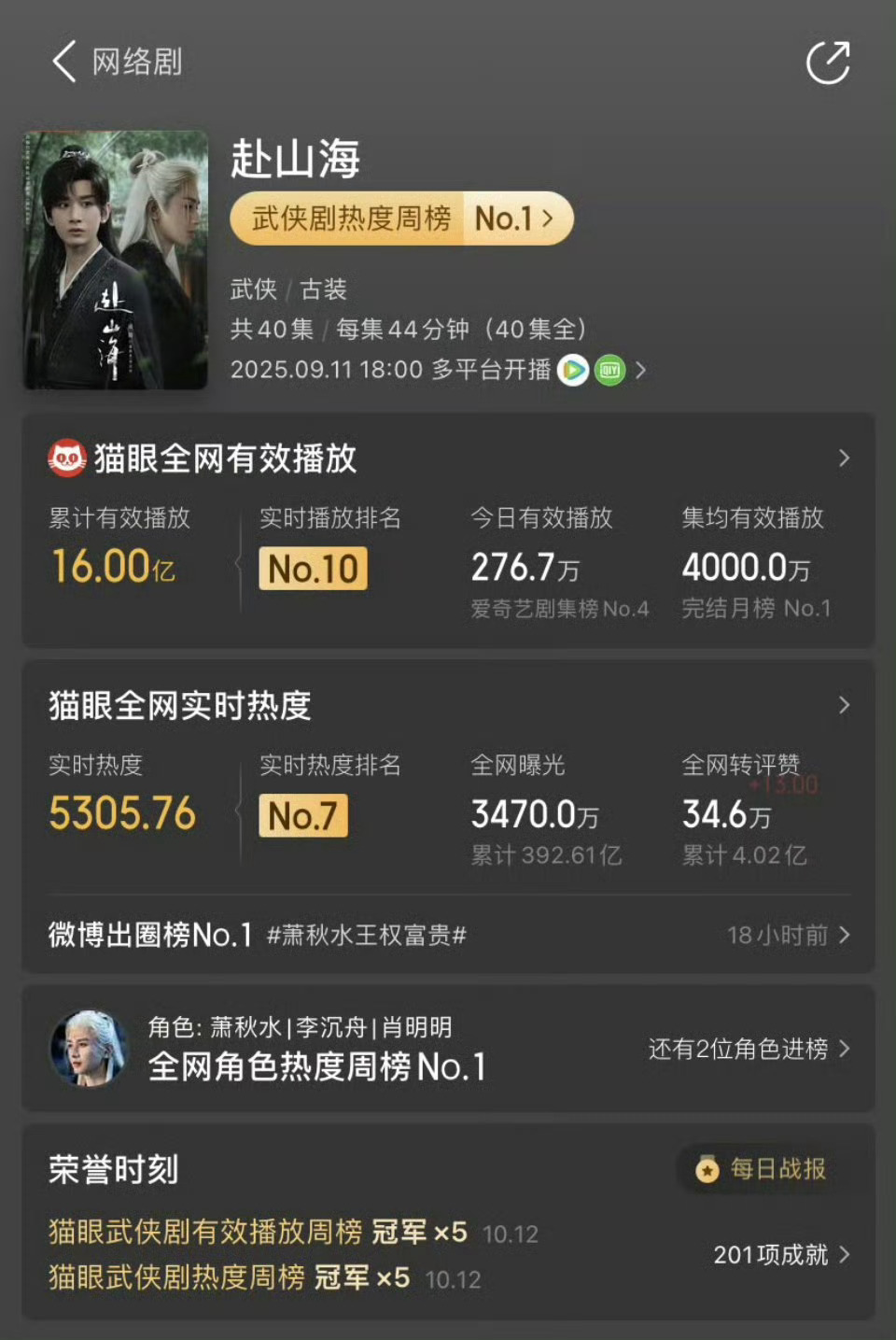 《赴山海》《藏海传》是今年目前热度最高的两部剧吗?[思考][思考][思考]赴山海全网有效播放量破16亿肖战藏海传入围金天使奖