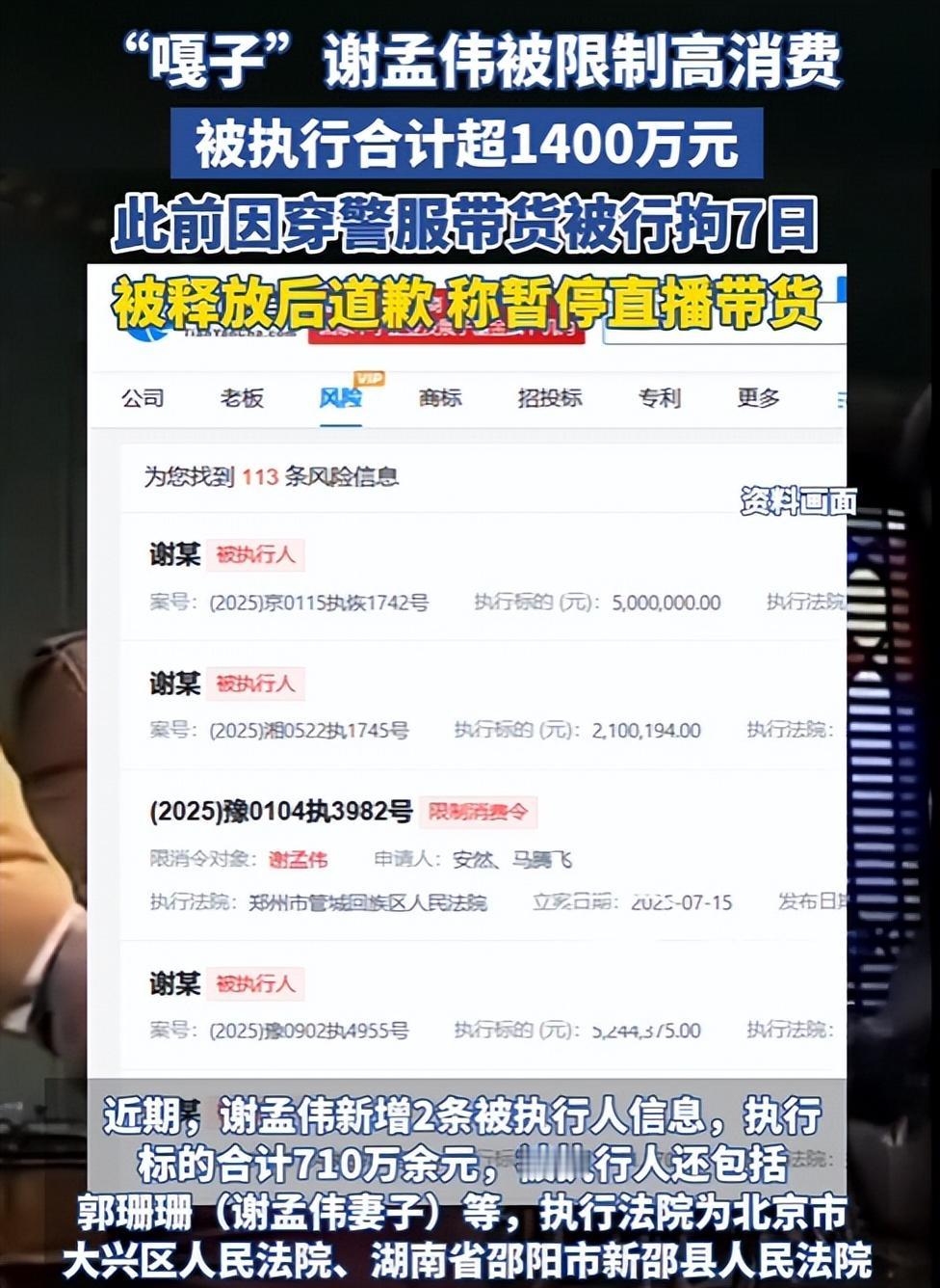 一句 “我回来了”,没等来掌声,倒炸出满屏 “还记得你干的荒唐事吗”。谢孟伟攥着 “小兵张嘎” 的光环,把一手好牌打得稀烂,如今的道歉,掩不住过往的荒唐。 9 月在云南拍缉毒戏,他竟在休息时套上带肩章、臂章的警服开直播,一边喊 “家人们放心买”,一边推充电宝。辽宁观众看不下去举报,他还嘴硬爆粗 “嘎子卖货没问题”,直到云南警方通报行政拘留 7 天,才慌忙道歉。可 1116 万粉丝的快手号、420 万粉丝的抖音号全被封,掉粉 6.3 万,电影也换角重拍。 这不是头一回。2020 年卖 398 元的 “茅台”,被市场监管总局点名是贴牌假货,他抹泪说 “被骗了”,转头继续卖货。潘长江劝他 “水太深”,他当场承诺停卖,转头就挂 “嘎子精选” 吆喝,成了 “潘嘎之交” 笑料。甚至狂言 “日产 50 亿吨牛奶”,被戳穿只说 “口误”。 如今他新增被执行人信息,和妻子负债超 1400 万,早被限高。道歉说 “停播遣员工”,可没了收入,债务更沉。 “小兵张嘎” 的光环该是铠甲,警服是庄严象征,他却全当捞钱工具。账号封了,口碑崩了,再喊 “回来”—— 底线丢了,谁还信?