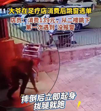 你大爷还是你大爷!内蒙古赤峰,大爷上二楼足疗店后,拒绝买单,紧接着瞅着楼层不高,居然灵机一动,从二楼跳了下来,一溜烟的功夫就跑走了!店家:有时候我真的想报警。 10月11日的赤峰已透着凉意,一家足疗店二楼的走廊里,60多岁的白发大爷突然推开临街的窗户。 店员刚要上前提醒“卫生间在这边”,就见老人一缩身跨了出去,“咚”的一声闷响砸在楼下的金属毛巾架上。 架子当场断成两截,老人却一骨碌爬起来,捂着腰拐进旁边的胡同,转眼就没了影。 这荒诞的一幕,居然是大爷为逃避139元足疗费演的“戏”。 事情要从当天上午说起,据店员回忆,大爷进店时脚步慢悠悠的,特意凑到价目表前,手指划过一个个项目,最后选了139元的经典足疗套餐。 按摩过程中他没提任何异议,结束后还坐在休息区的沙发上,端着店家给的茶杯慢悠悠抿着,和店员聊了两句天气,谁都没看出异样。 然而在十几分钟后,大爷起身说要去卫生间,朝着走廊尽头走去。 那里的窗户正对着后院的窄巷,平时很少有人靠近。 店员听见窗户“吱呀”一声被推开,刚追过去就只看见空荡荡的窗台,探头往下望,正好撞见老人摔在毛巾架上的瞬间。 店家调看监控时发现,老人落地时明显踉跄了一下,却还是咬牙加快了脚步。 有人提议报警,老板却摆了摆手,就一百多块钱,真要摔出好歹,医药费都不止这点,没必要。 毕竟老年人骨头脆,二楼虽不算高,摔成骨折的风险可不小,万一要是出了事,这都有口难言啊! 而店家这份体谅,却藏着小微商家的普遍困境。 据行业统计,全国足疗行业每年要发生超过12万起纠纷,逃单占了近三成。 对小馆子来说,每月因逃单丢的钱,能占到营收的3%,这些钱都是按摩师们一双手揉出来、按出来的血汗钱。 可真遇上逃单,多数店家都像这家一样选择忍了,报警要录口供、等处理,耽误做生意,金额小了往往不了了之。 就像这件事情,明明钱并不是很多,却宁愿冒着风险也要“逃单”。 大爷跑没影的时候,可能觉得自己“赚”了,却不知道他丢掉的远比139元值钱。 为了一百多块钱,赔了健康与尊严,既不划算也不应该。 信息来源:杭州网2025-10-13发布视频