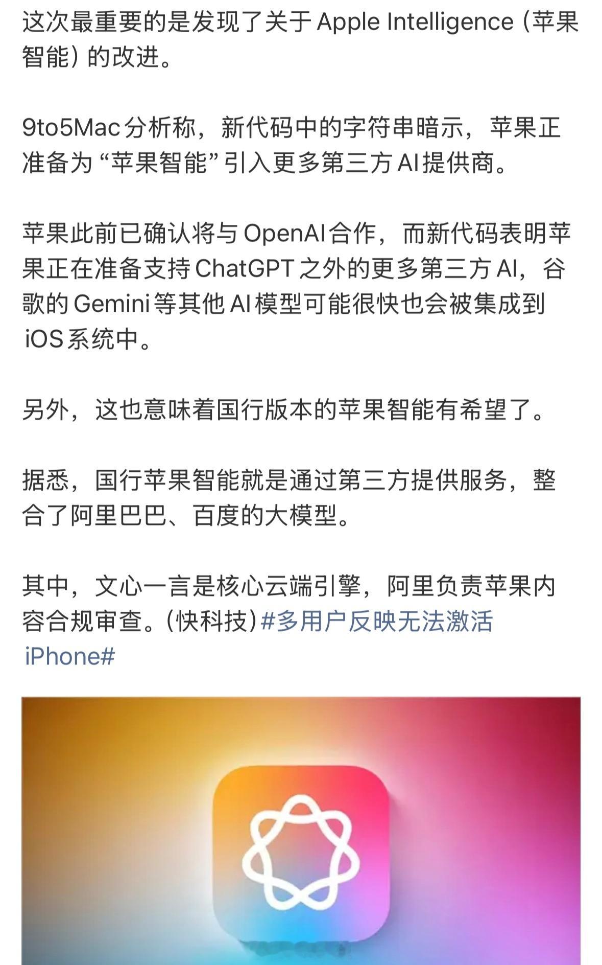 苹果智能将引入第三方AI国内苹果用户想用苹果AI的话,估计要等到2026年1月-2月?[流汗]