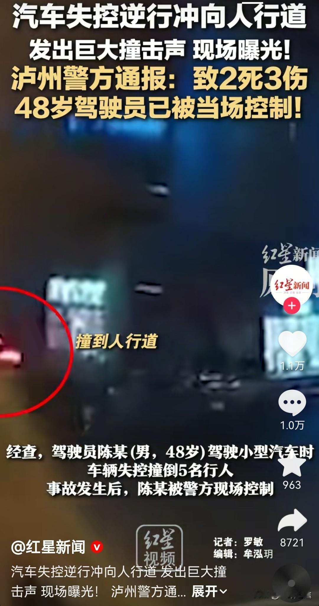 方向盘是自己把握我不信失控。,方向盘都拿不好还开什么车! 这个咱不说什么这车那车的,就说这个行为,要不就是病了失去知觉了,要不就是情绪失控故意的,连一脚刹车都没有就干上去了!真是把自己生命他人生命当儿戏吖!