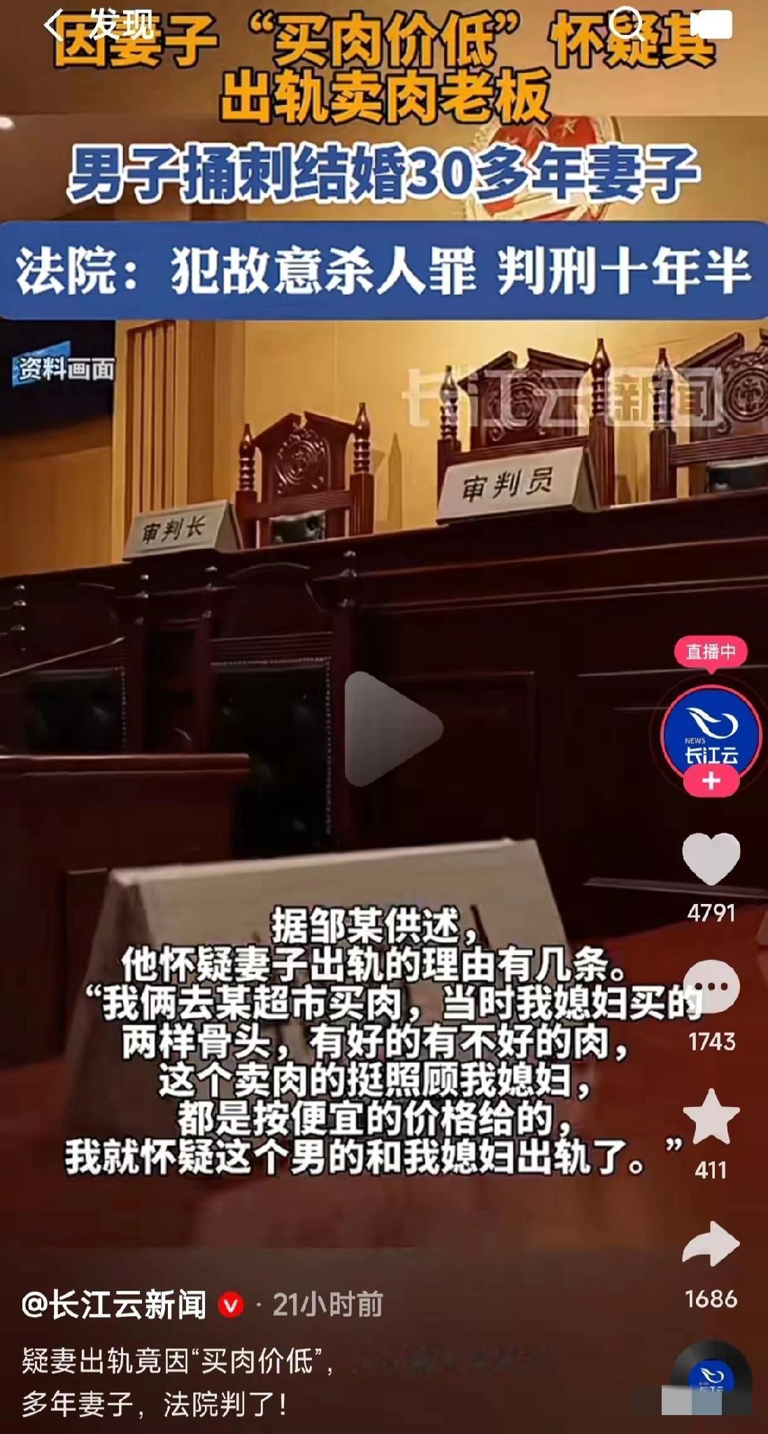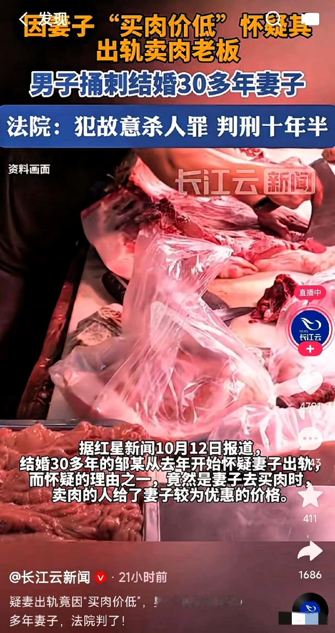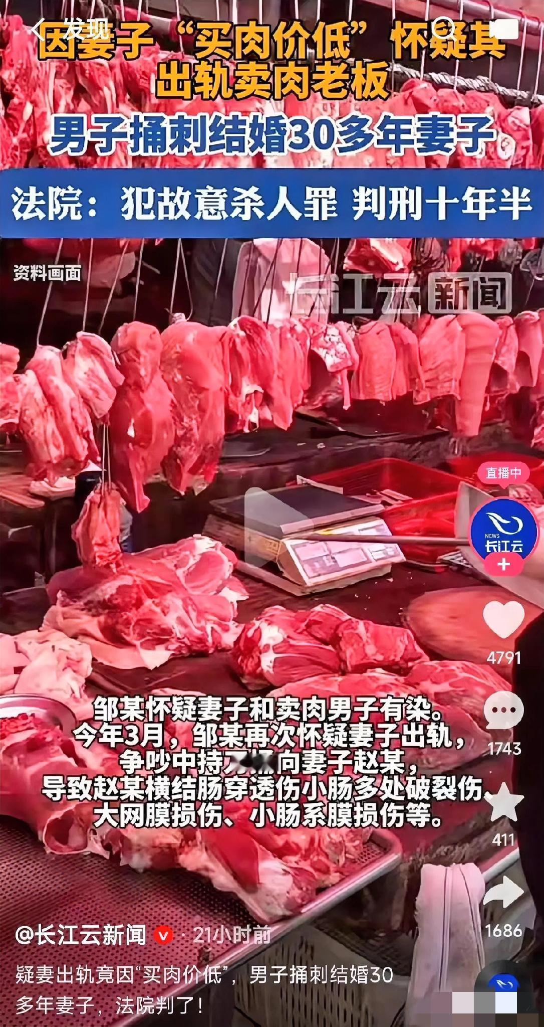 真的离谱!妻子买肉比别人便宜点,竟被结婚30多年的丈夫怀疑出轨肉店老板,争执中还被对方持刀捅伤——这哪是找了老公,分明是找了个“不定时炸弹”! 会过日子本是多少家庭求之不得的事,到这却成了“原罪”。说白了,这根本不是“怀疑出轨”,是男人骨子里的偏执和控制欲在作祟,连妻子省钱持家都能脑补出龌龊戏码,30年的情分在他眼里竟不如一句毫无根据的猜测。 万幸的是妻子没被伤到要害,而丈夫也因故意杀人罪被判了10年半,算是罪有应得。但这事想想就后怕,嫁给一个情绪失控又多疑的人,连正常过日子都要提心吊胆。 你们说,遇到这种偏执的伴侣,到底该怎么保护自己?要是早发现对方不对劲,有没有办法及时止损?