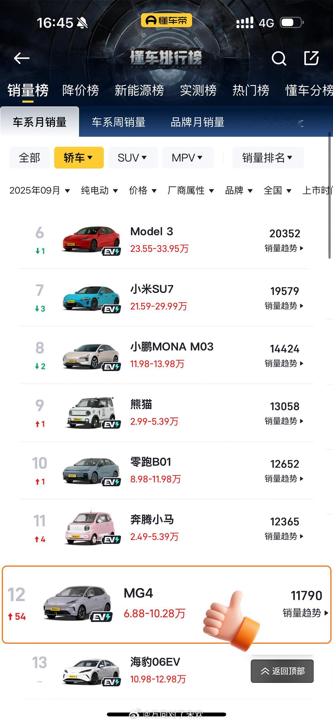 纯电轿车市场,又有新玩家出圈全新MG4上市首月卖出11790辆直接打进纯电轿