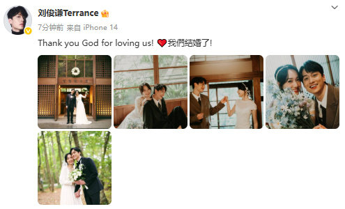 刘俊谦结婚刘俊谦官宣结婚14日,官宣结婚喜讯:“ThankyouGodf